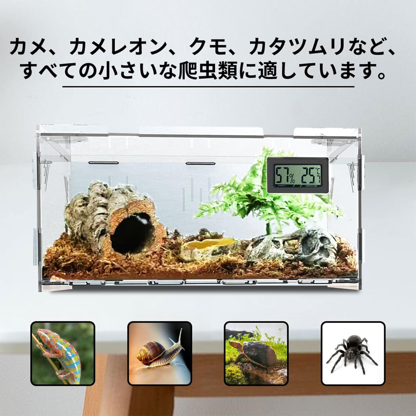 トカゲ ケージ 爬虫類 ケージ 飼育ケース 温度湿度計付き 爬虫類テラリウムタンク 昆虫飼育ケース 透明 通気ケージ 給餌箱 飼育容器アクリル 換気が良い 給餌ケージ ボックス 亀 トカゲ ヤモリ 蜘蛛 サソリハリネズミ ヘビ カエル 小型ヘビなど動物 适用 飼育や輸送に最適 (30 * 20 * 15cm)