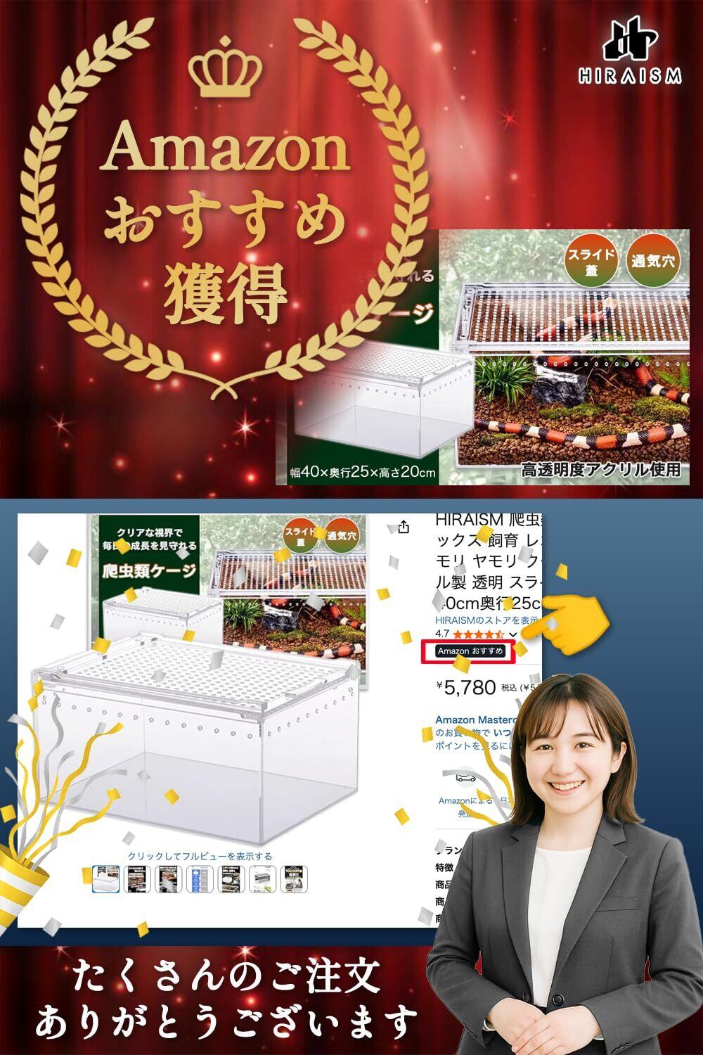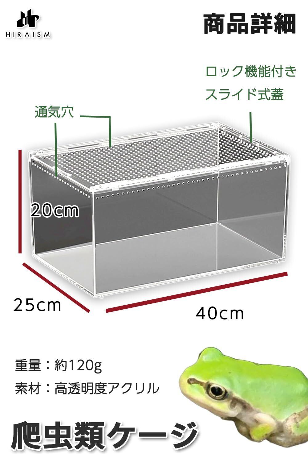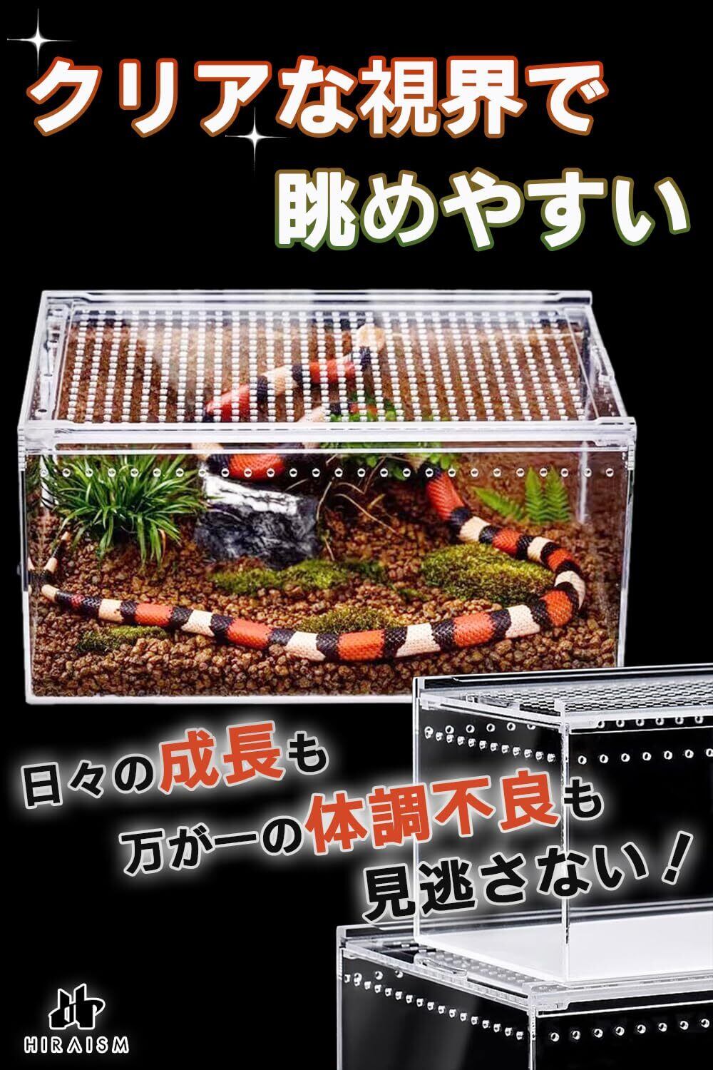 HIRAISM 爬虫類 ケージ レプタイルボックス 飼育 レオパ カナヘビ トカゲ イモリ ヤモリ クモ カエル サソリ アクリル製 透明 スライド蓋 通気穴あり 幅40cm奥行25cm高さ20cm
