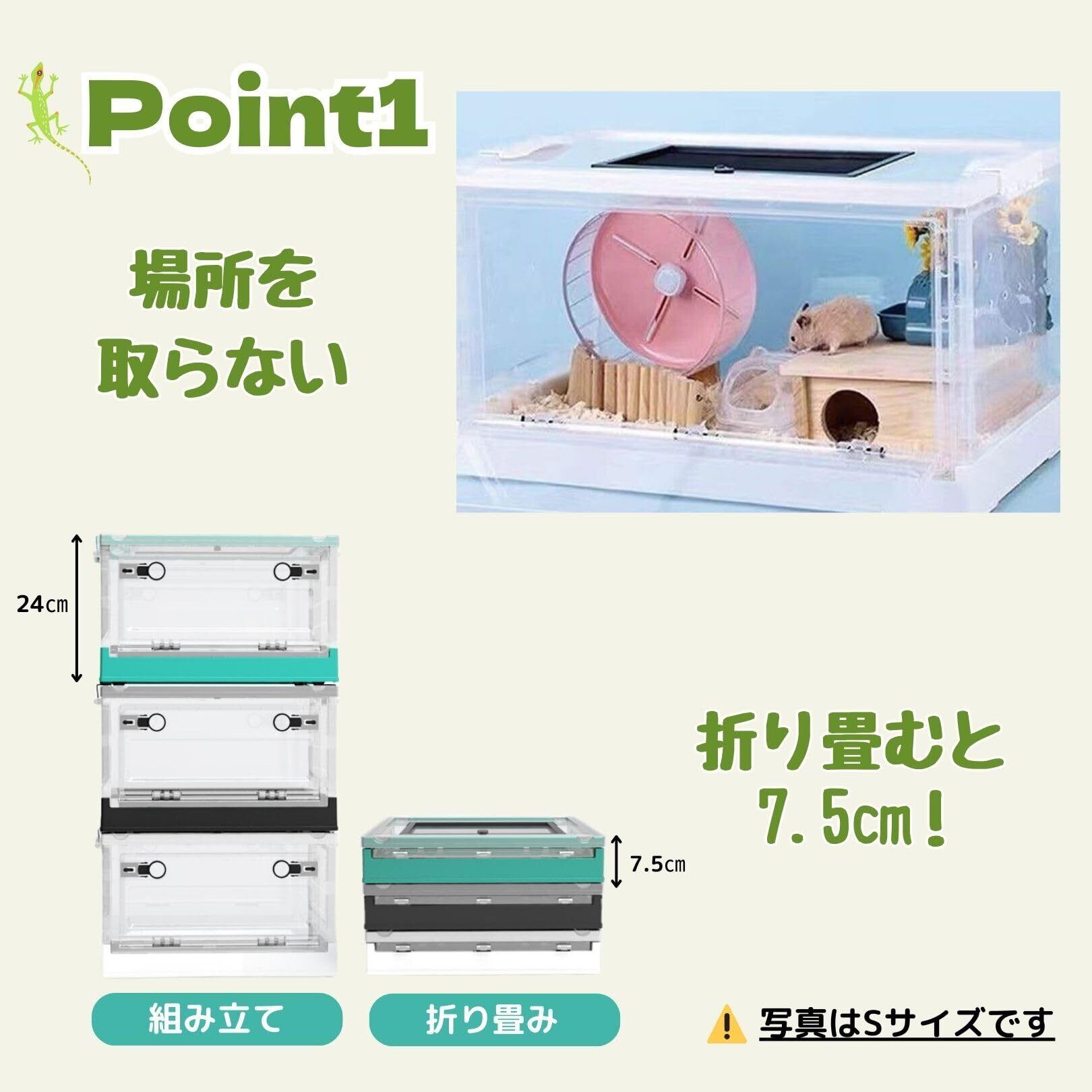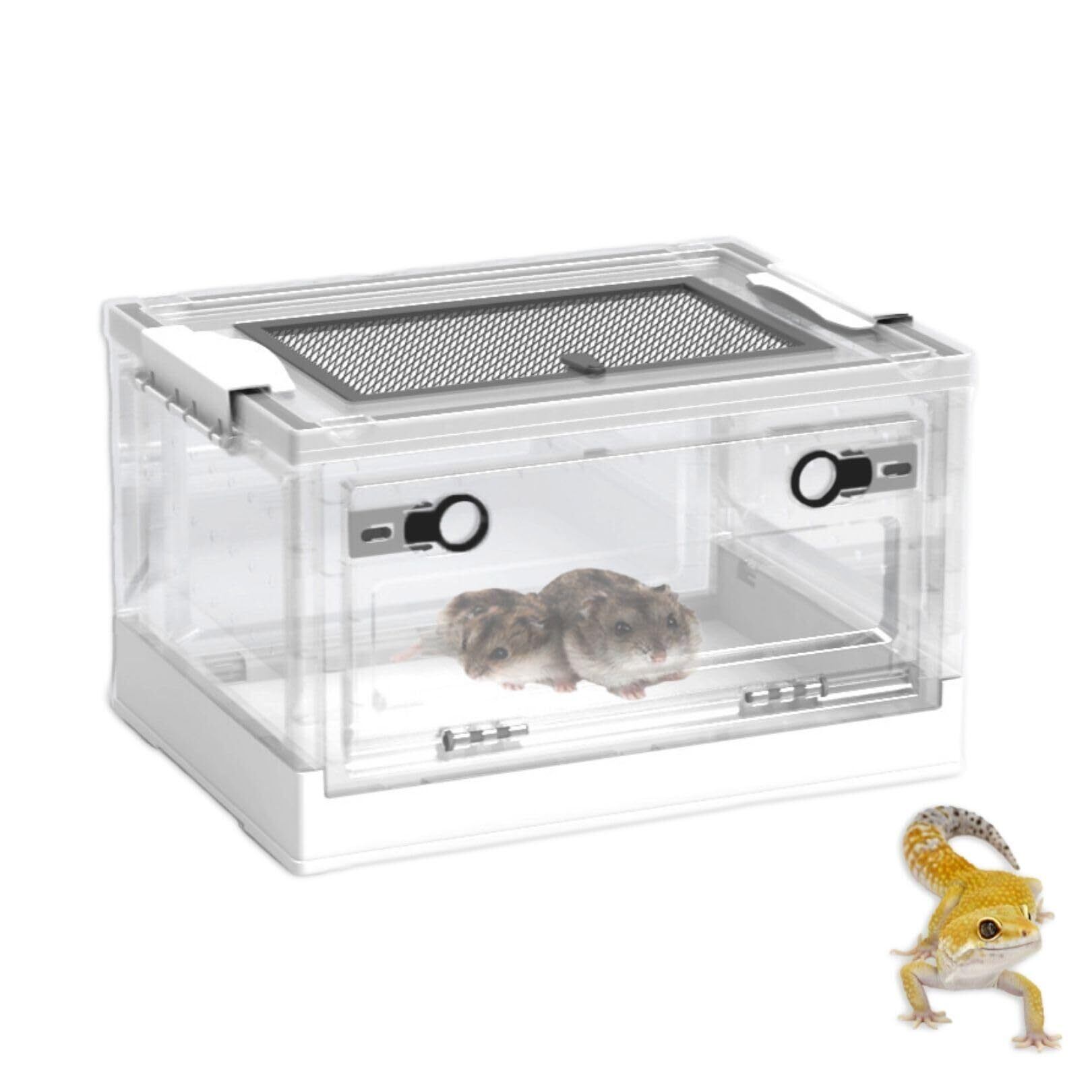 EU SOU 折り畳み式 爬虫類ケージ ケース - リクガメ 両生類 レオパ トカゲ用 (S, 白)