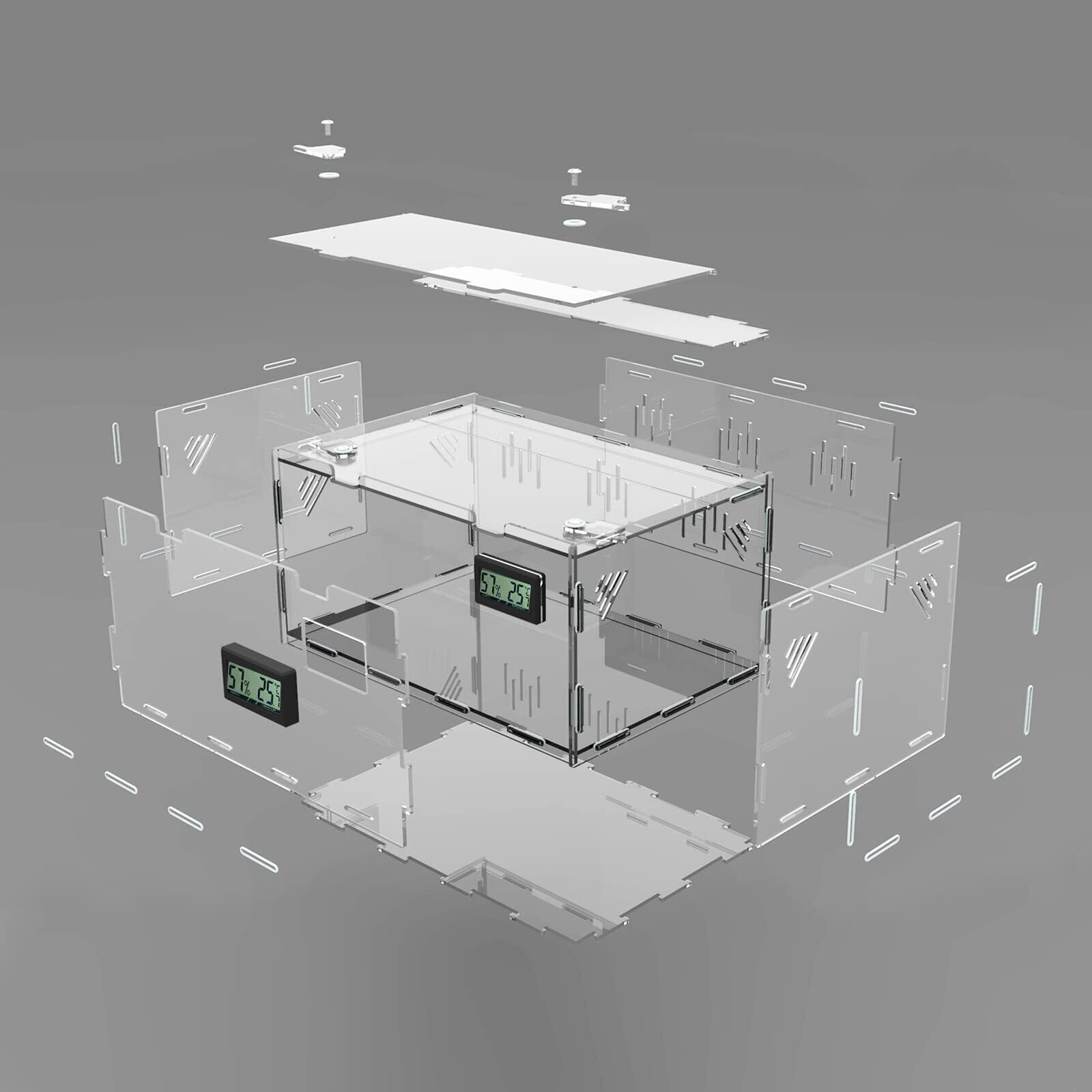 Ghims 爬虫類 ケージ 飼育ケース 温度湿度計付き 昆虫飼 透明 通気 給餌箱 容器アクリル 換気が良い ボックス テラリウムタンク 亀 トカゲ ヤモリ 蜘蛛 サソリハリネズミ ヘビ カエル 小型ヘビなど動物 适用 飼育や輸送に最適 (30 * 20 * 15cm)