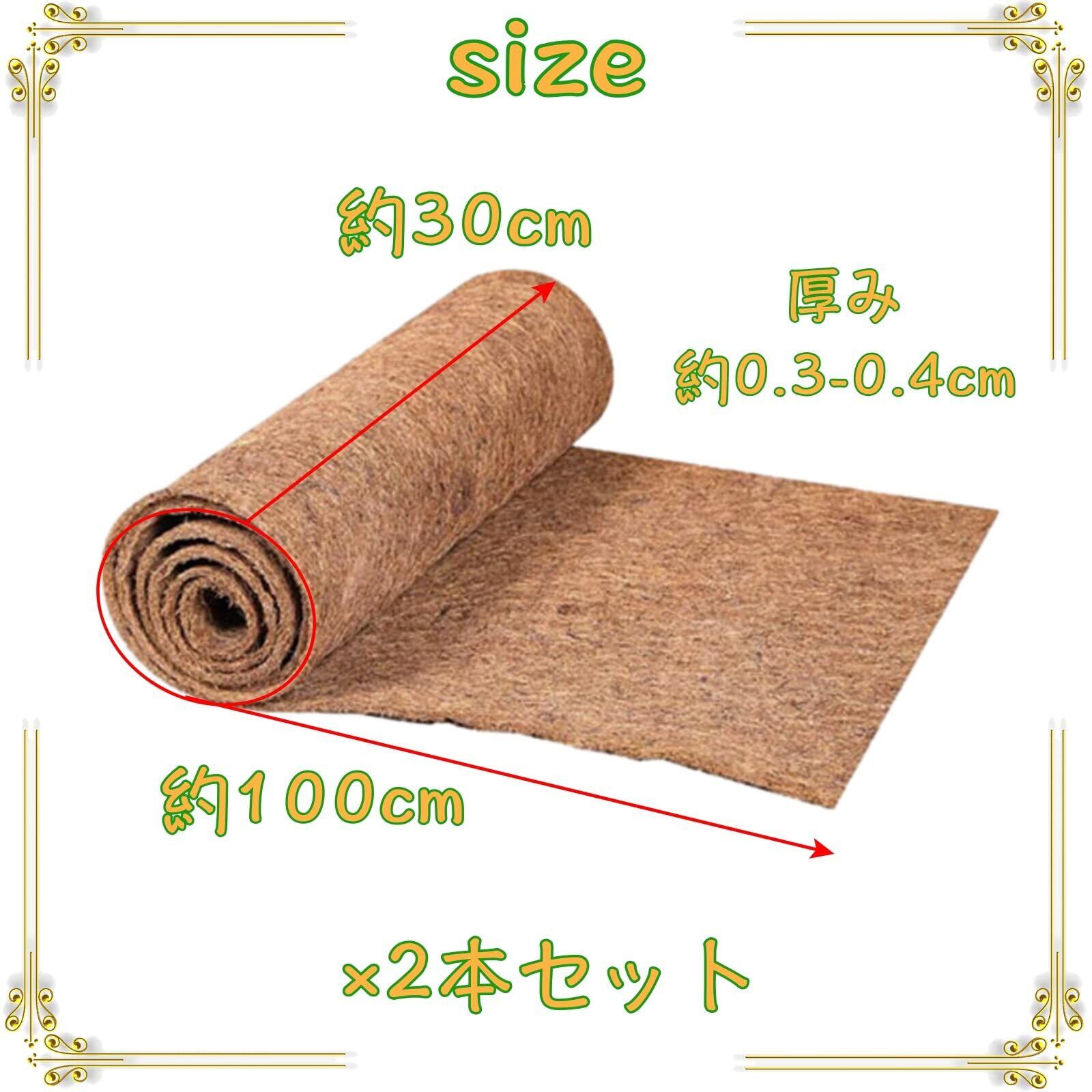 Sweet Plus ココナッツマット ココヤシシート ココナッツシート ファイバー 爬虫類 床材 飼育マット ガーデニング 園芸 観葉植物 植木鉢 保温 (30*100*0.4cm/2本)