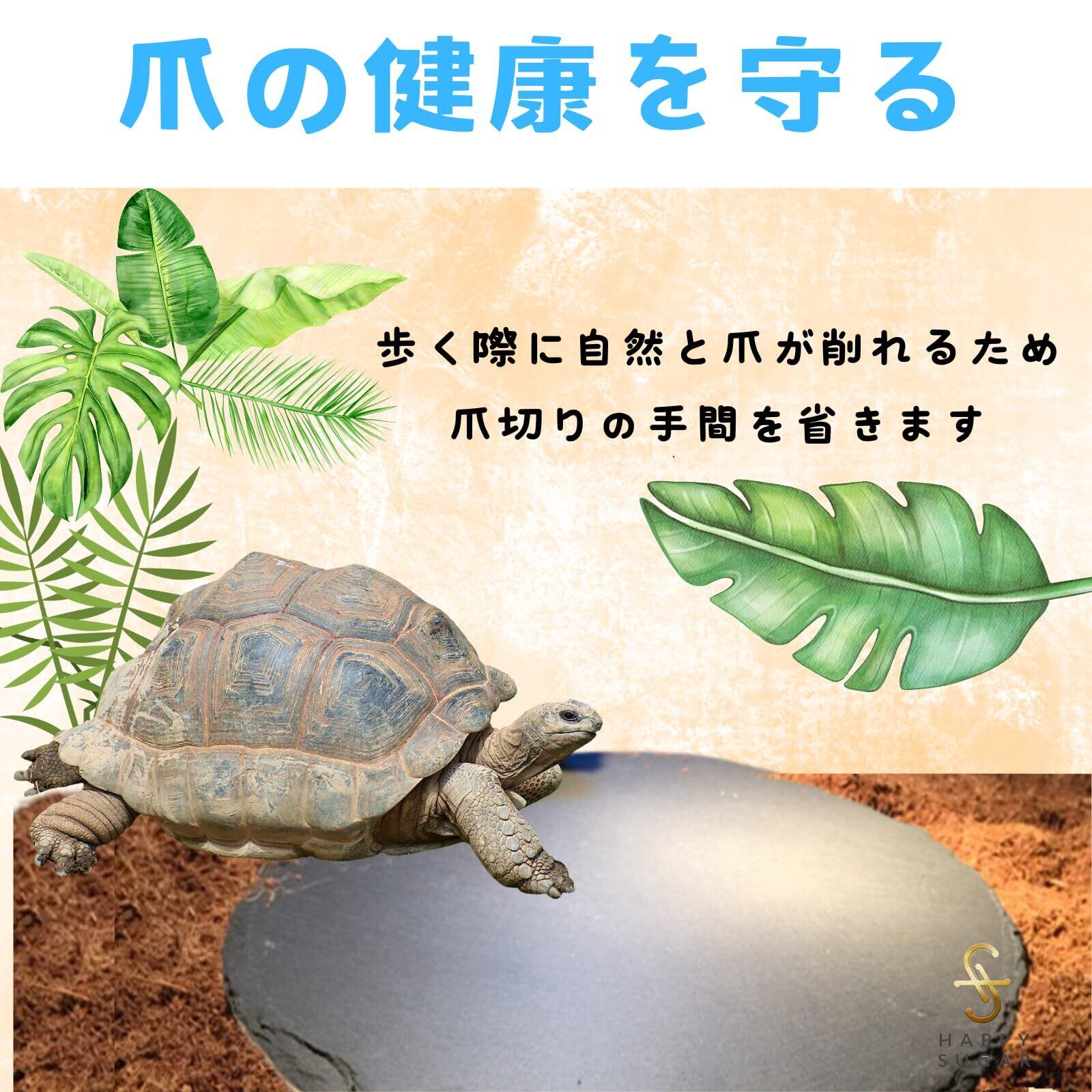 【爪切りの手間を省き、爪の健康を守る】カメの爪には血管が通っており、長くなった爪が折れると危険です。この床材は、カメが歩く際に自然と爪が削れるため、爪切りの手間を省き、健康的な爪を保つ手助けをします。