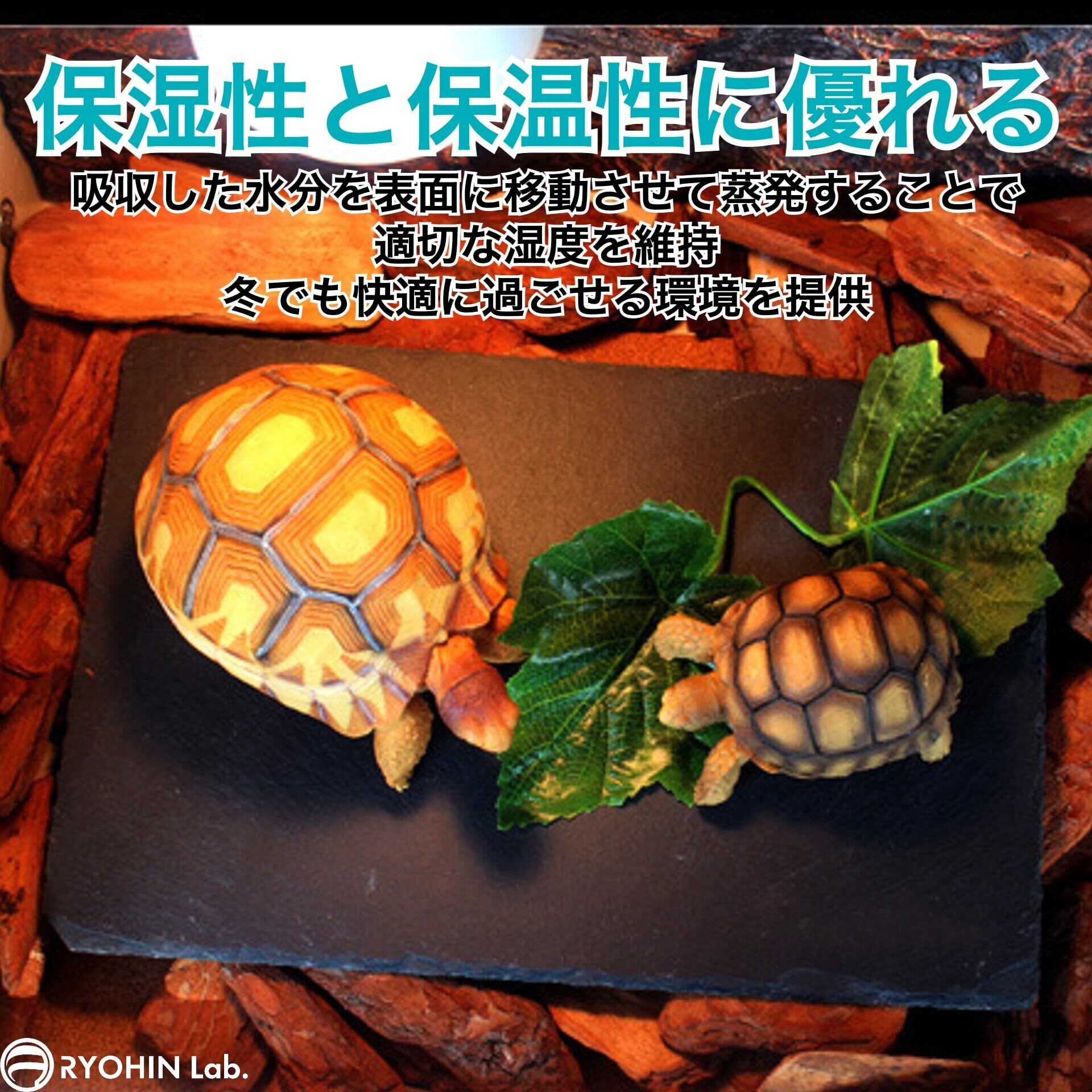 【保湿性と保温性に優れる】床材は高い保湿性と保温性を持ち、カメの健康をサポートします。水を吸収し、内部の水分を表面に移動させて蒸発することで、適切な湿度を維持し、冬でも快適に過ごせる環境を作ります。