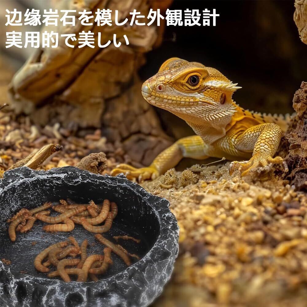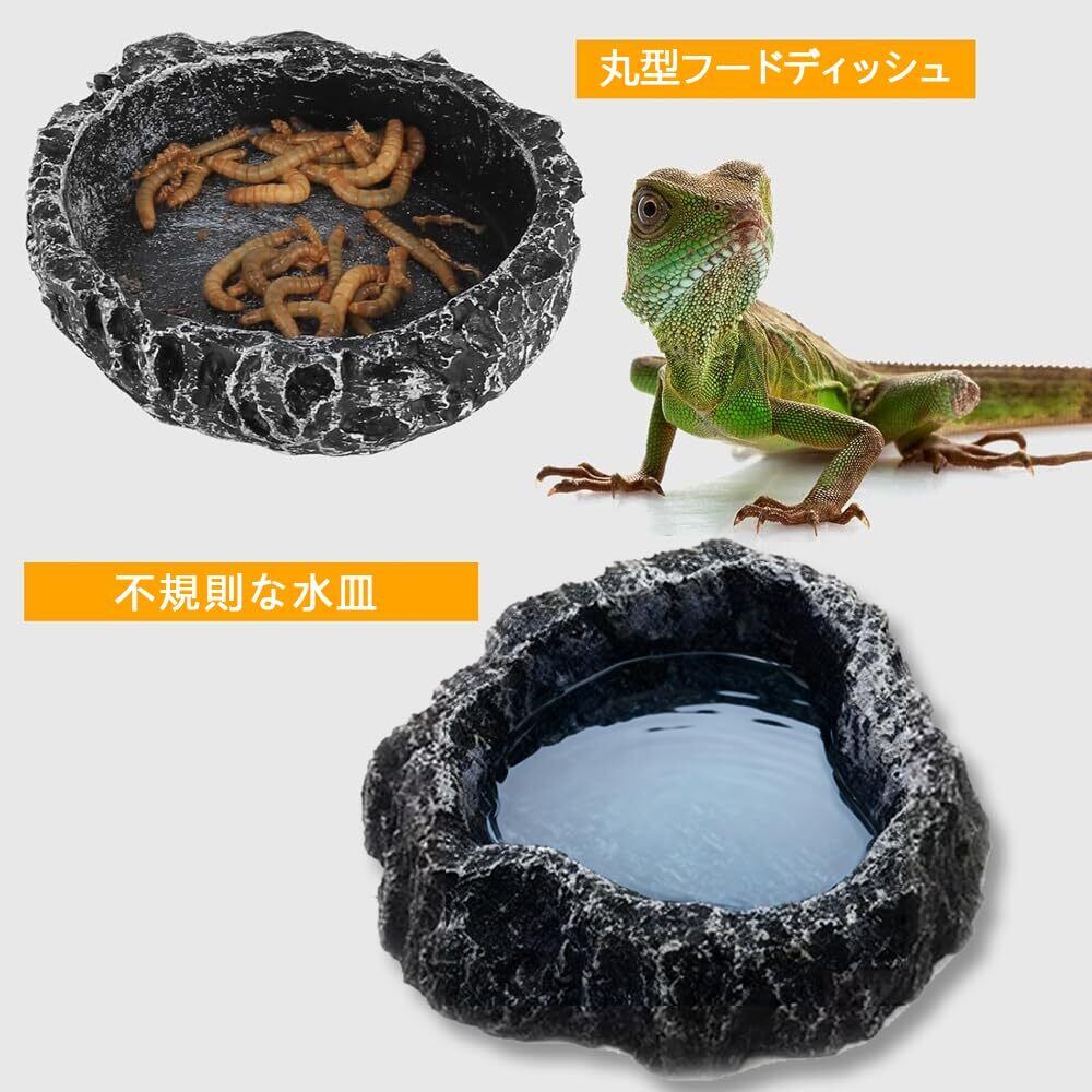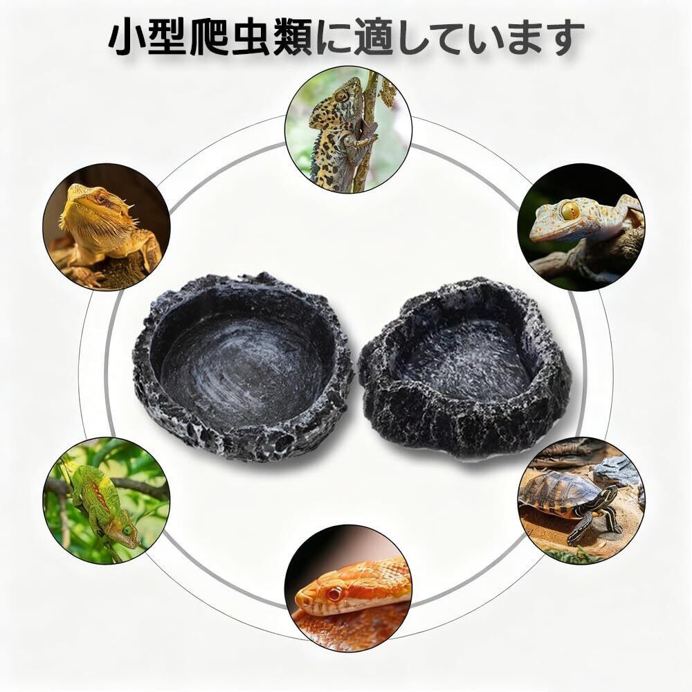 爬虫類 水入れ エサ皿 2個セット 自然岩デザイン 軽量樹脂製 ひっくり返しにくい すべり止め加工 陸亀 リクガメ トカゲ ヤモリ カエル 両生類 飼育用品 お手入れ簡単
