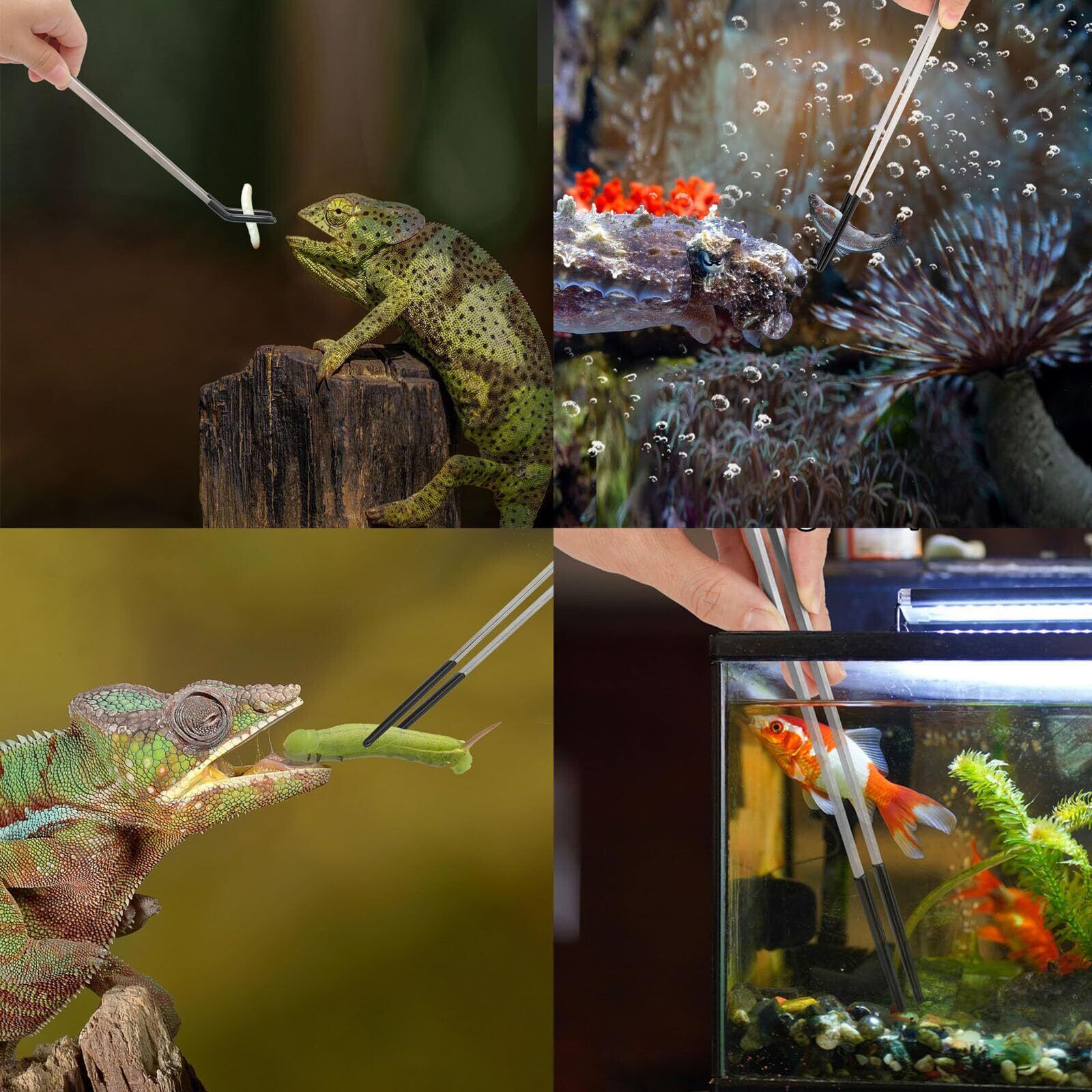 さまざまな用途: 爬虫類の餌やり以外にも、このトングは水槽の植物の取り扱い、ミミズの拾い上げなどにも適しています。ペットや水族館愛好家にとって、多目的に使える必需品です。