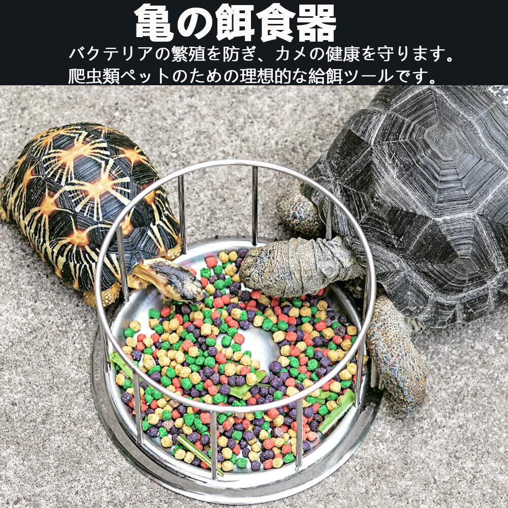 【使用理由】ほとんどのカメは、足で食べたり、体全体を餌の上に乗せて食べることを好むため、餌を汚しやすく、浪費の原因にもなります。このフードボウルはこの問題の良い解決策です。ステンレス製の柵と突出した中間部は、餌の競合を避け、科学的な給餌ができるように設計されています。
