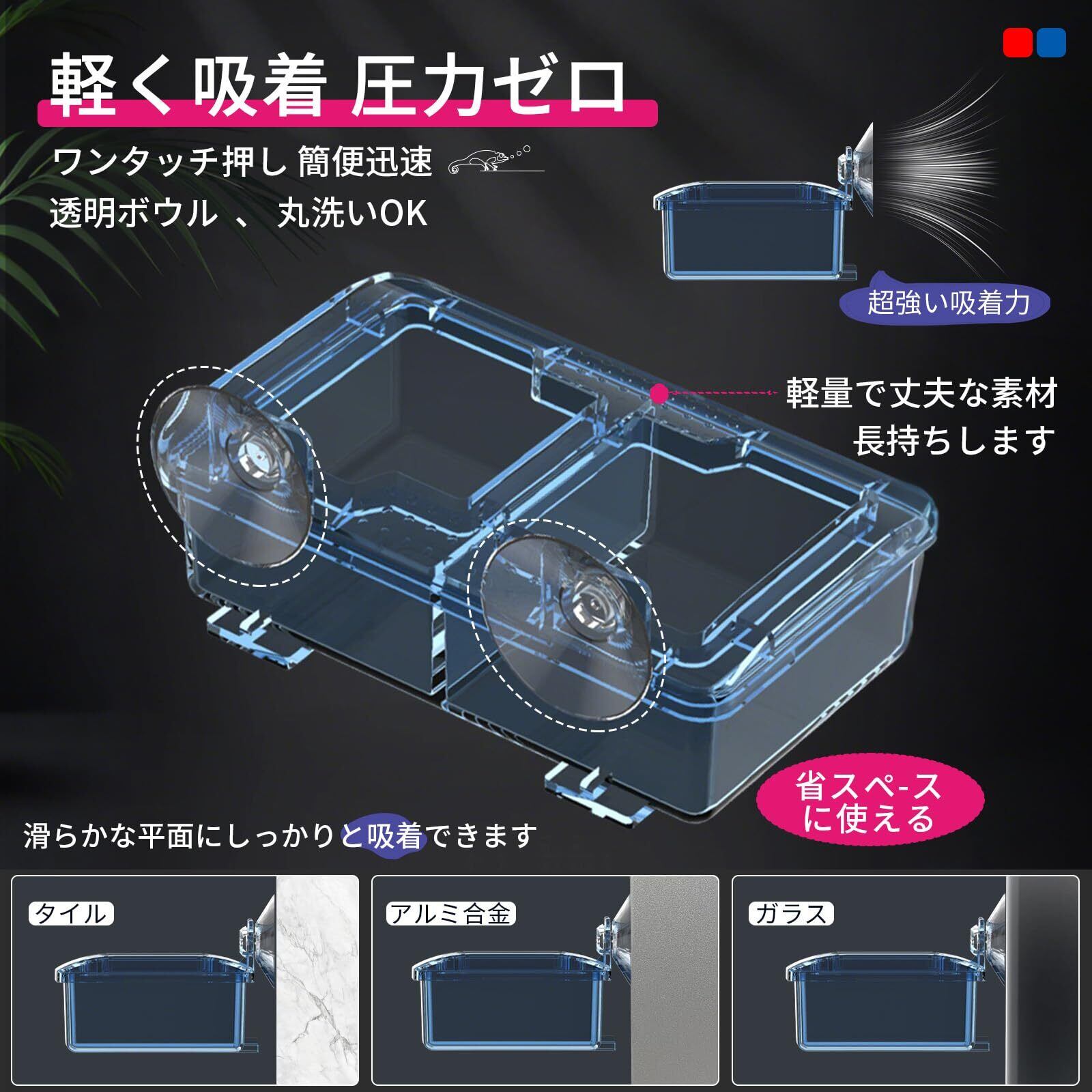 RhyzoZyne 爬虫類 両生類 餌入れ 水入れ ワーム生きた飼料容器 吸盤固定タイプ 透明ボウル 爬虫類用品 トカゲ カナヘビ レオパ ヤモリ飼育 水の皿 の餌のボウル【2皿セット】 丸洗い可能 (透明ブルー, 小(75x50x35mm))
