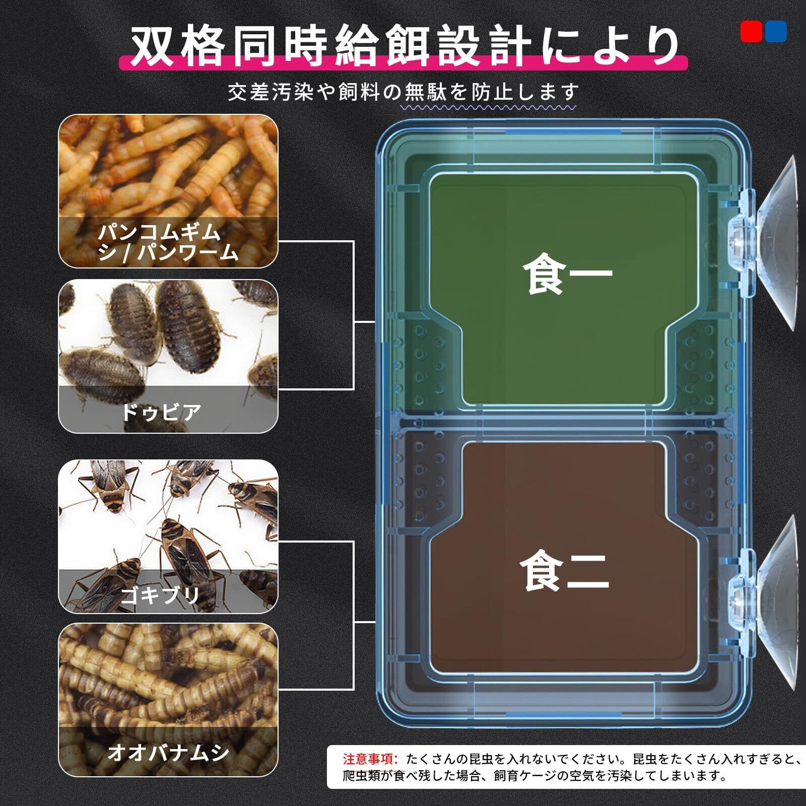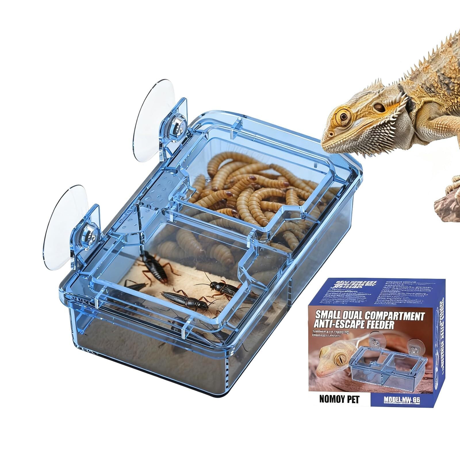 【デュアルコンパートメント設計で餌の分け与えが可能】 仕切り付きの二つの収納スペースを通じて、異なる種類の餌(例:デュビアとミールワーム)を同時に分けて与えることができ、餌の混合や共食いを防ぎます。衛生を保ち、餌の管理をより簡単にします。