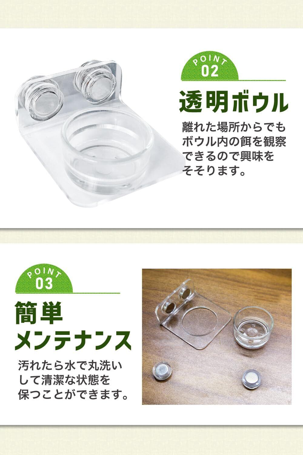 透明ボウルで観察ラクラク:餌や水の残量が一目でわかり、補充のタイミングを逃しません。観察を楽しみたい方にも最適。