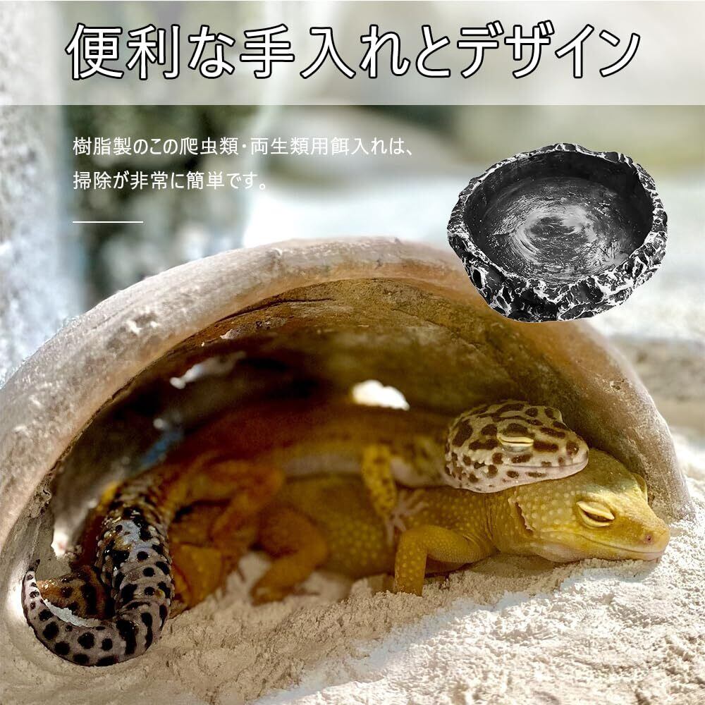 【便利な手入れとデザイン】樹脂製のこの爬虫類・両生類用餌入れは、掃除が非常に簡単です。水で洗い流すだけで清潔に保てます。また、自然な岩の外観は、ペットショップや自宅の装飾にも最適です。
