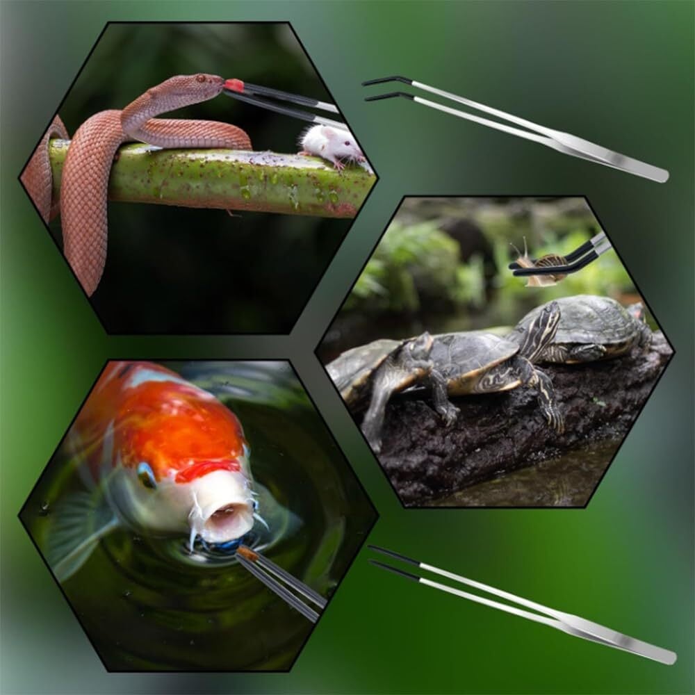 3.【便利な超ロング設計】約27cmの長さで、大型の水槽やテラリウムでも手を濡らさずに餌やりが可能。トカゲ、ヘビ、カメなどの飼育に最適です