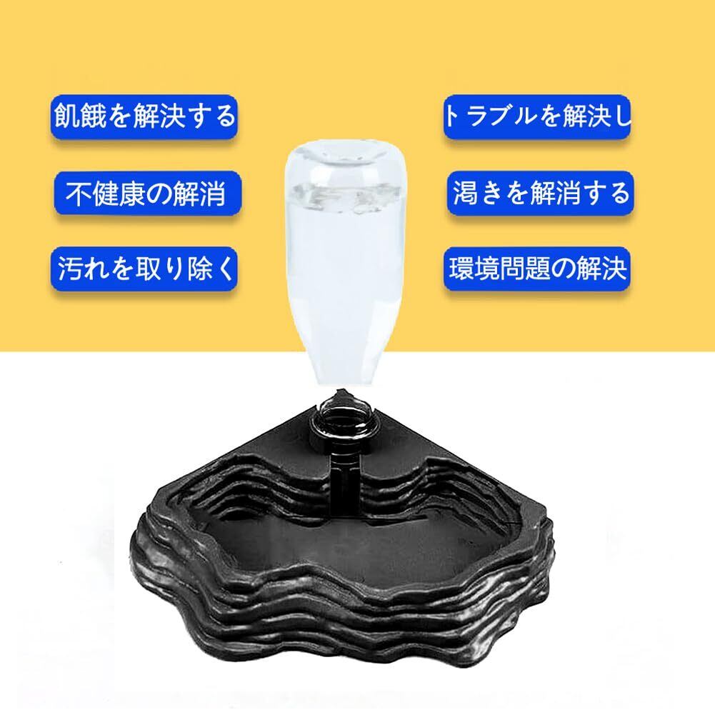 爬虫類 自動給水装置給水器 両生類飼育水入れ餌入れ エサ入れ エサ皿自動給水 水皿 トカゲ カメ 蛇 ヤモリ 亀 カメレオン エサ皿 フィーダー 両生類水飲み皿 水槽の飾り -第二世代黒