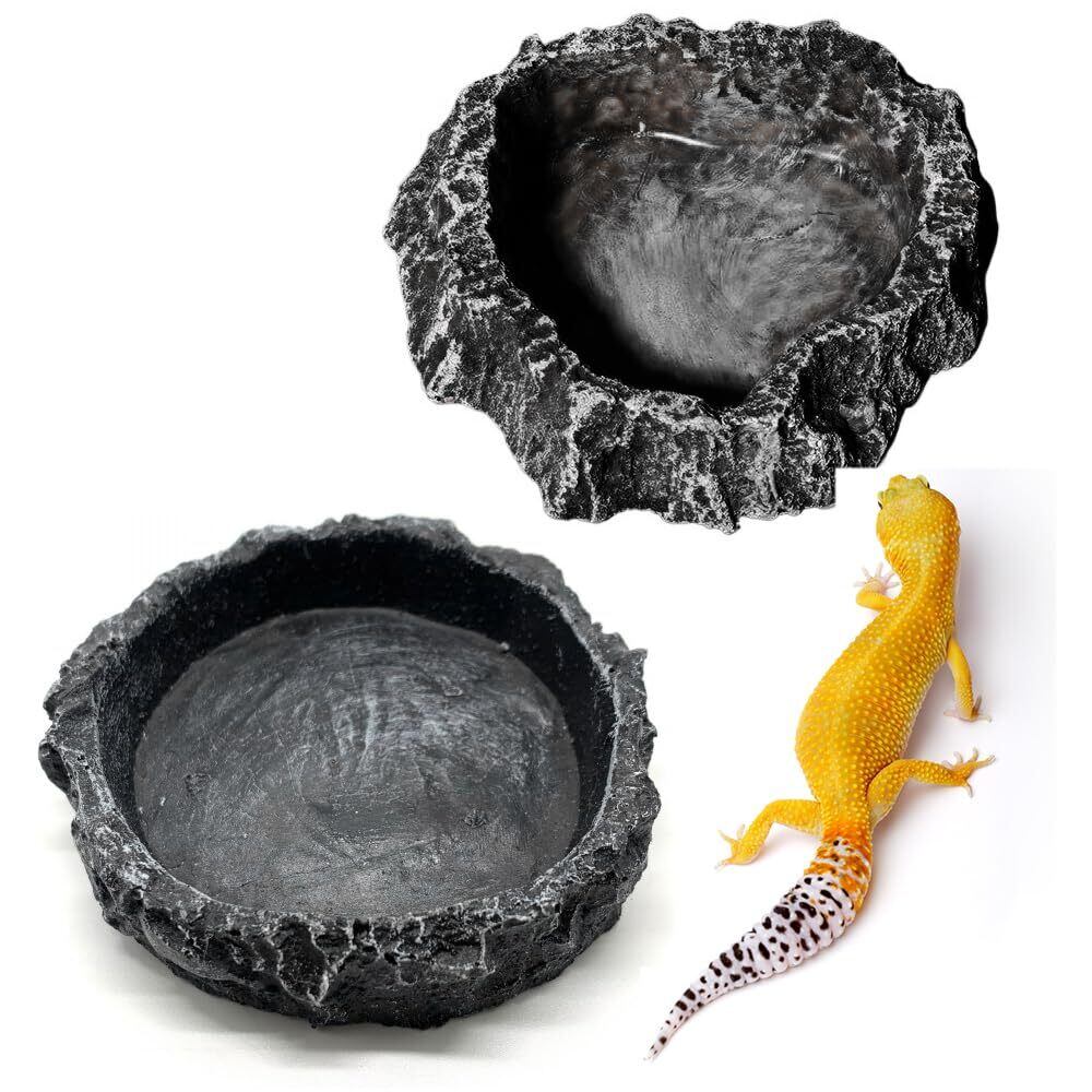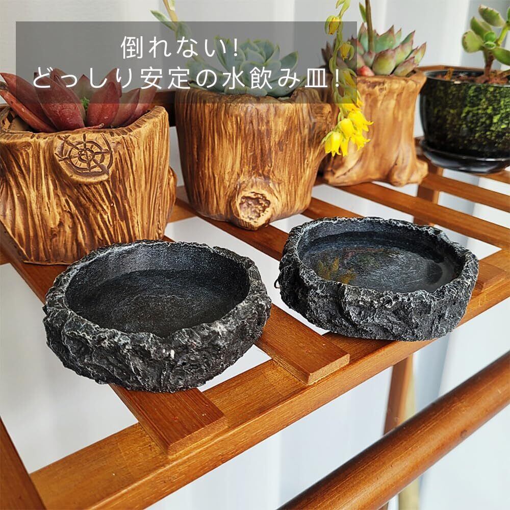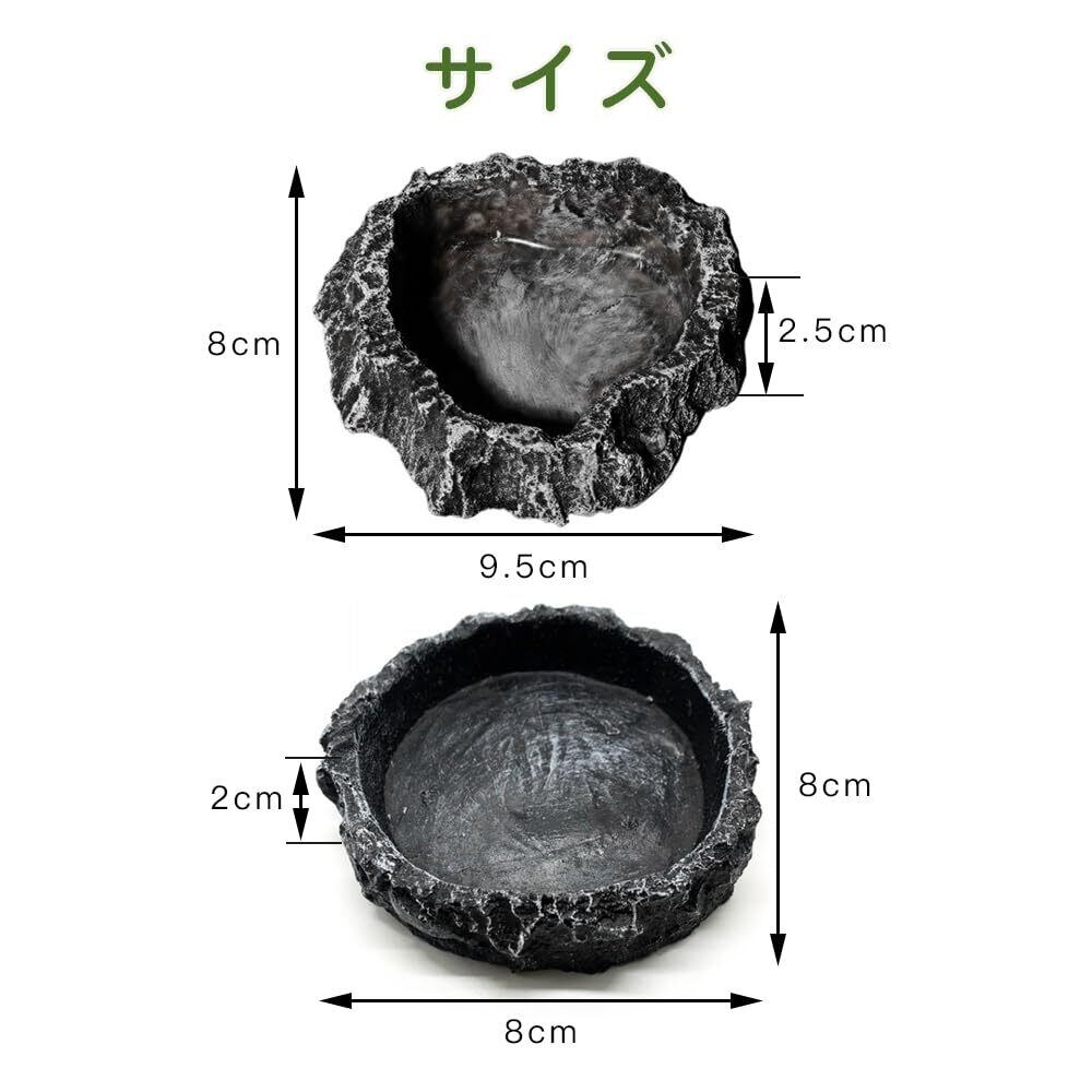 CHANGJIQ 爬虫類 水入れ 餌入れ 2個入 水飲み皿 自然の岩イメージ 樹脂製 ひっくり返しにくい エサ皿 ペット給餌板 食品ボウル ウォーターディッシュ 給餌ボウル 陸亀 ゲトカゲ ヤドカリ ガエル ヤモリ オントカゲ 飼育ケース内装