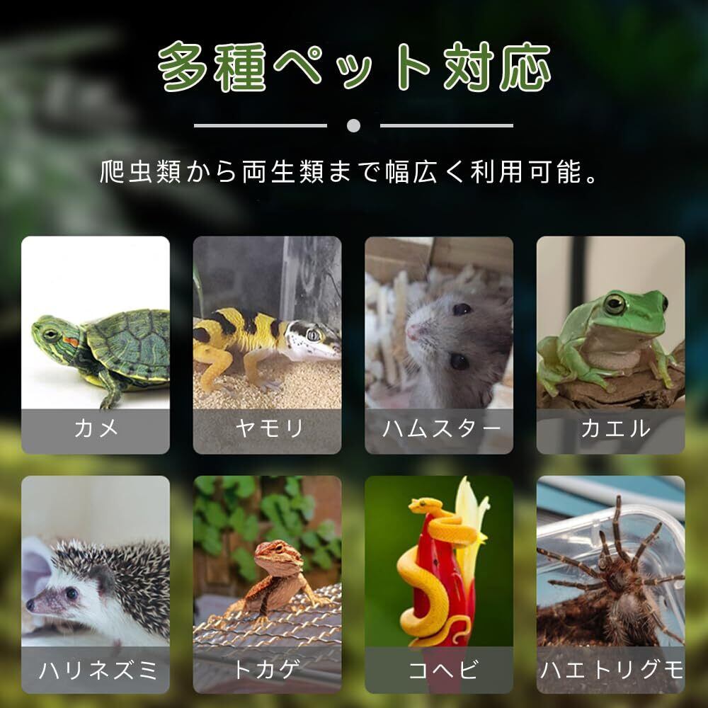 幅広い生体に対応:トカゲ、リクガメ、ヤドカリ、ツノガエルなど、さまざまな爬虫類・両生類に適しています。