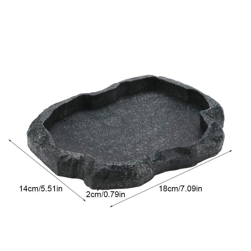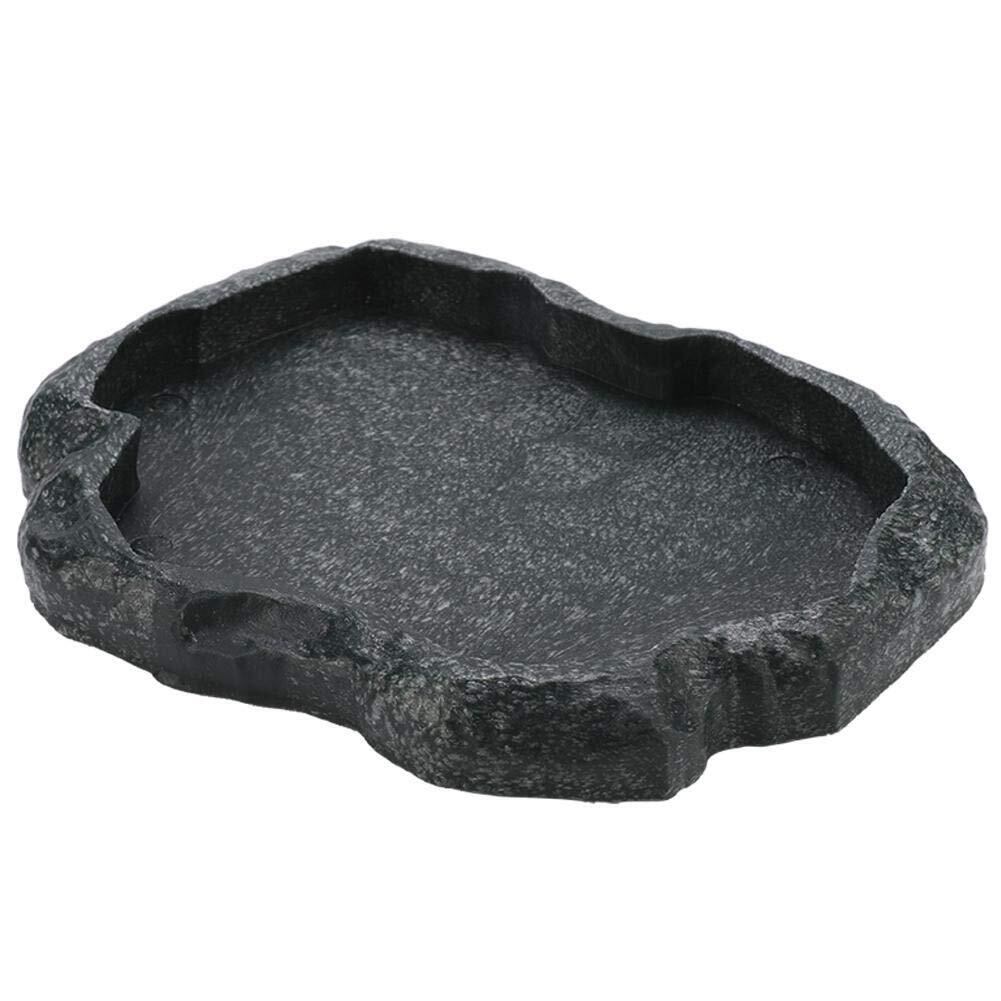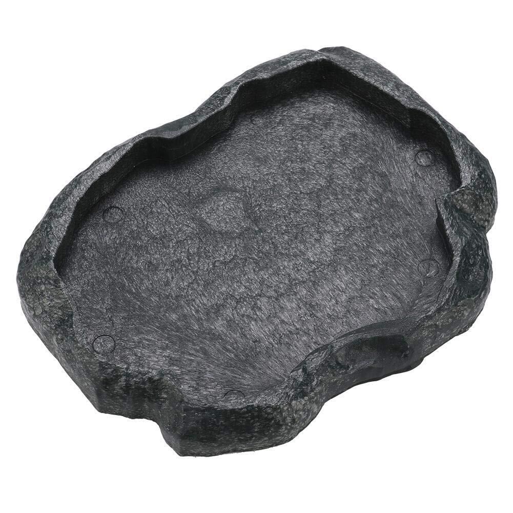 爬虫類食器 ウォーターディッシュ お皿 お盆 餌入り 水入り レプティロック レプタイルフードディッシュ ウォーターディッシュ 爬虫類用品 爬虫類専用 樹脂 水槽 亀 ヤモリ トカゲ(ブラックM)