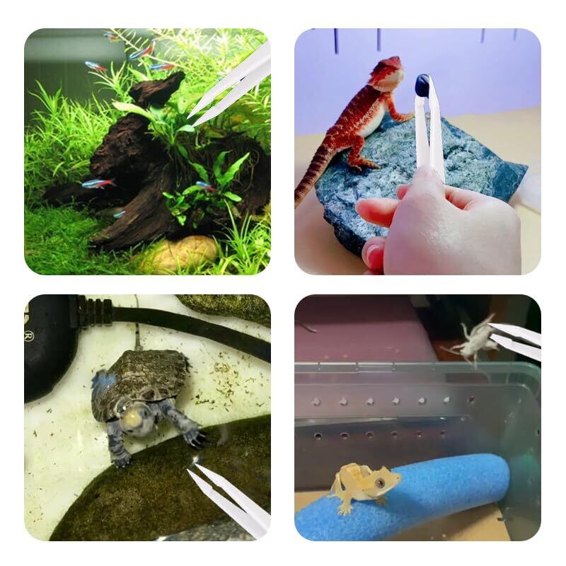 ピンセットの頭部は細くてやさしく、昆虫や小さな植物、あらゆる大きさの餌を簡単につかむことができる。 柄の部分は握りやすく、ピンセットの動きをより正確にコントロールできる。