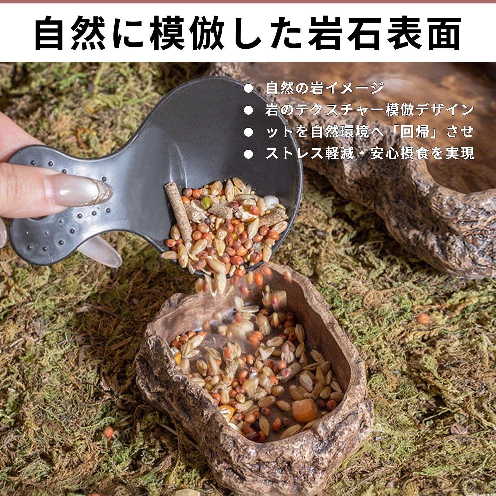 【安定性と耐久性に優れ、生態に溶け込むデザインで飼育体験を向上】 高密度セメント素材を使用し、噛み付きに強く腐食にも強い。底面が広く上部が狭い構造で転倒を防ぎます。自然の原色調で熱帯雨林、砂漠などの造景テーマにシームレスに溶け込み、実用性と美観を両立させ、飼い主が布置の楽しみを享受できるようにします。