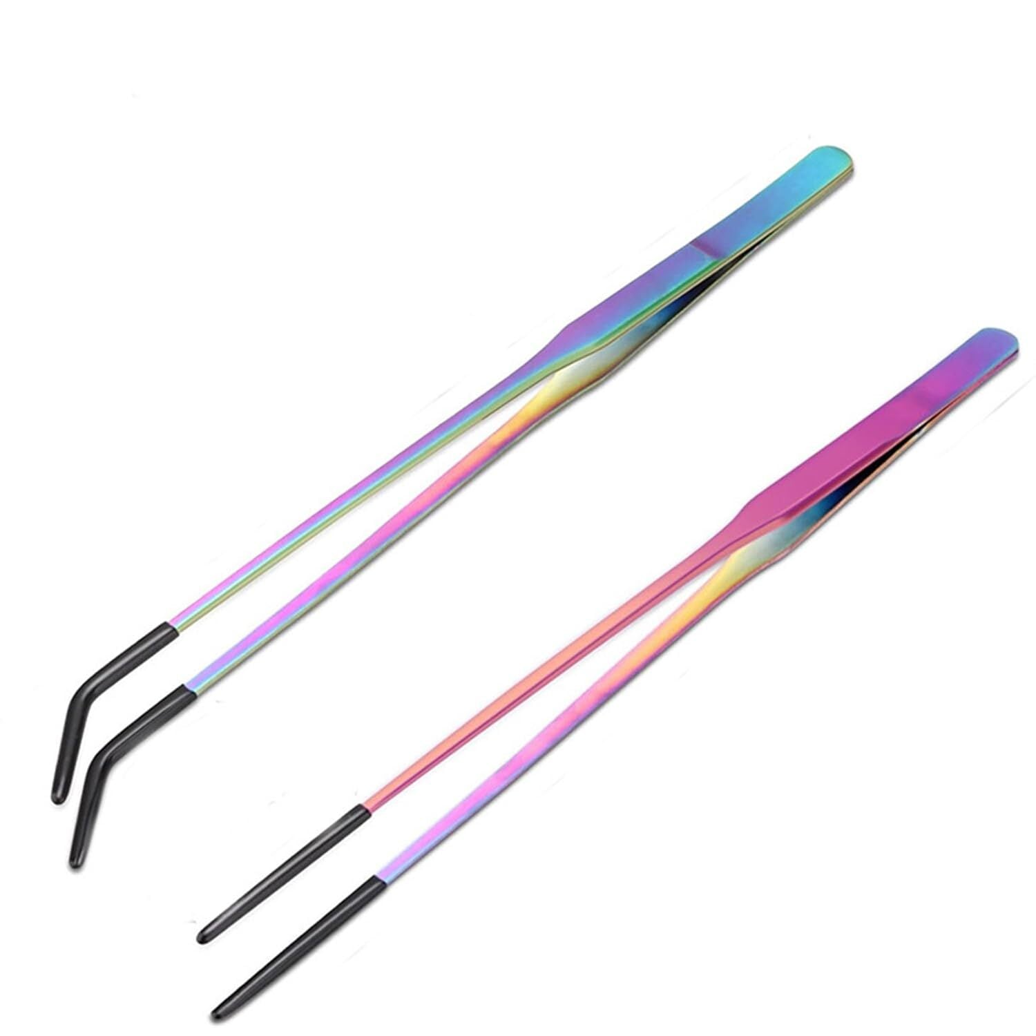 爬虫類 ピンセット 2本セット【ストレート&カーブ】27センチメートル ステンレス製 ゴムチップ付き 給餌トング 長いピンセット トカゲ・ヘビ・カエル・昆虫用 ペット給餌ツール (カラフル)