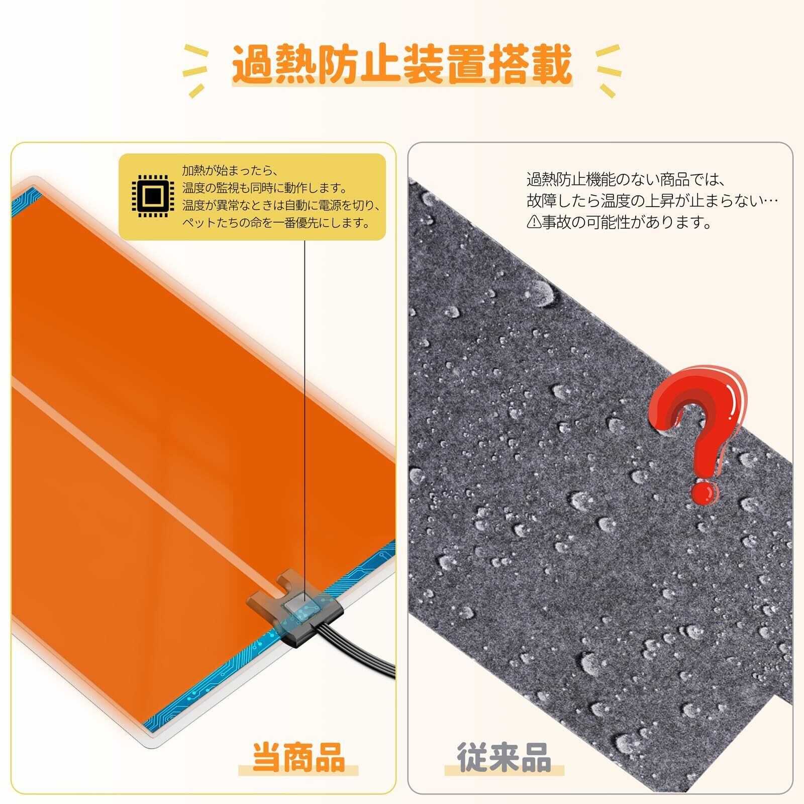【過熱安全装置付】当商品はPSE認証済です。加熱パッドは、加熱が始まったら、温度の監視も同時に動作します。 温度が異常なときは自動に電源を切り(短絡)、ペットたちの命を一番優先にします。
