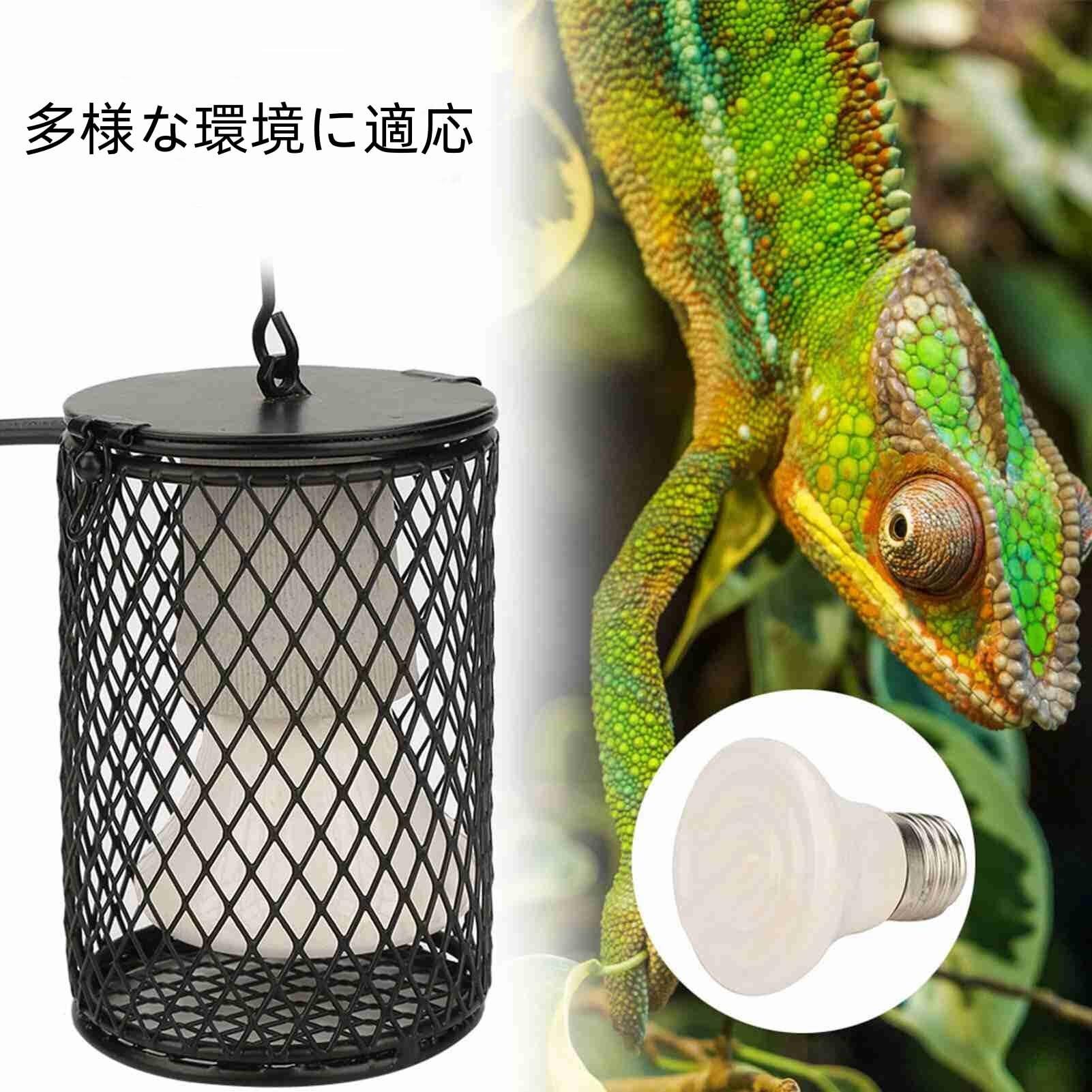 VGEBY 100 W セラミックヒーター 爬虫類 エミッター熱電球ランプ ペットブローダー セラミック熱球 ケージ付き 火傷防止 フックデザイン ブローダー用ヒートランプ カメ ヘビ トカゲ カエル ヒヨコ 黒