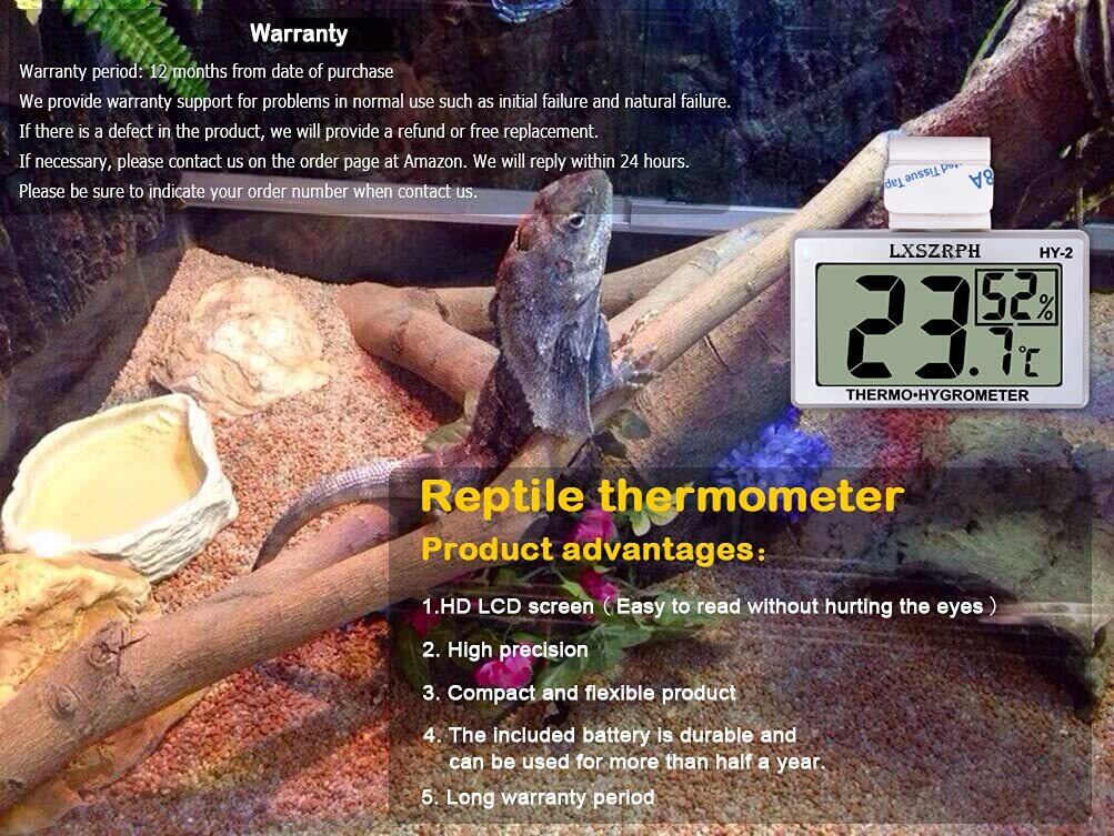 【爬虫類の健康を見守るために理想な環境を維持するには素晴らしい価値がある温湿度計】適した温度と湿度は爬虫類冷血動物にとって非常に重要です。この高精度の爬虫類デジタル温湿度計を使用すると、適切な温度と湿度を厳密に監視して、あなたの最愛の爬虫類が完全な健康状態に保つことができます。