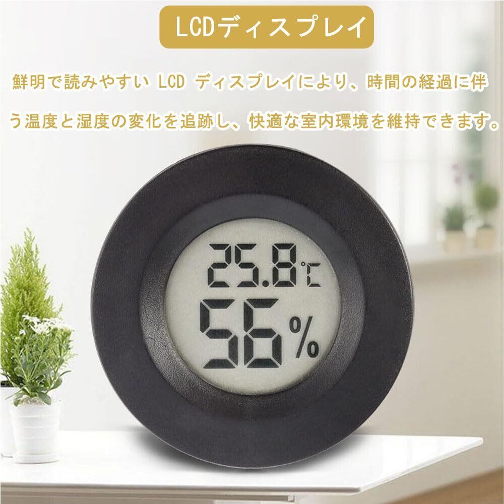 ミニ温湿度計 デジタル 電池付き 液晶スクリーン 小型 爬虫類 温度計 室温計 スイッチ 粘着/嵌入使用可能 検知温度変化 湿度変化 冷蔵庫/水族館/花屋部屋/室内用 (ブラック)