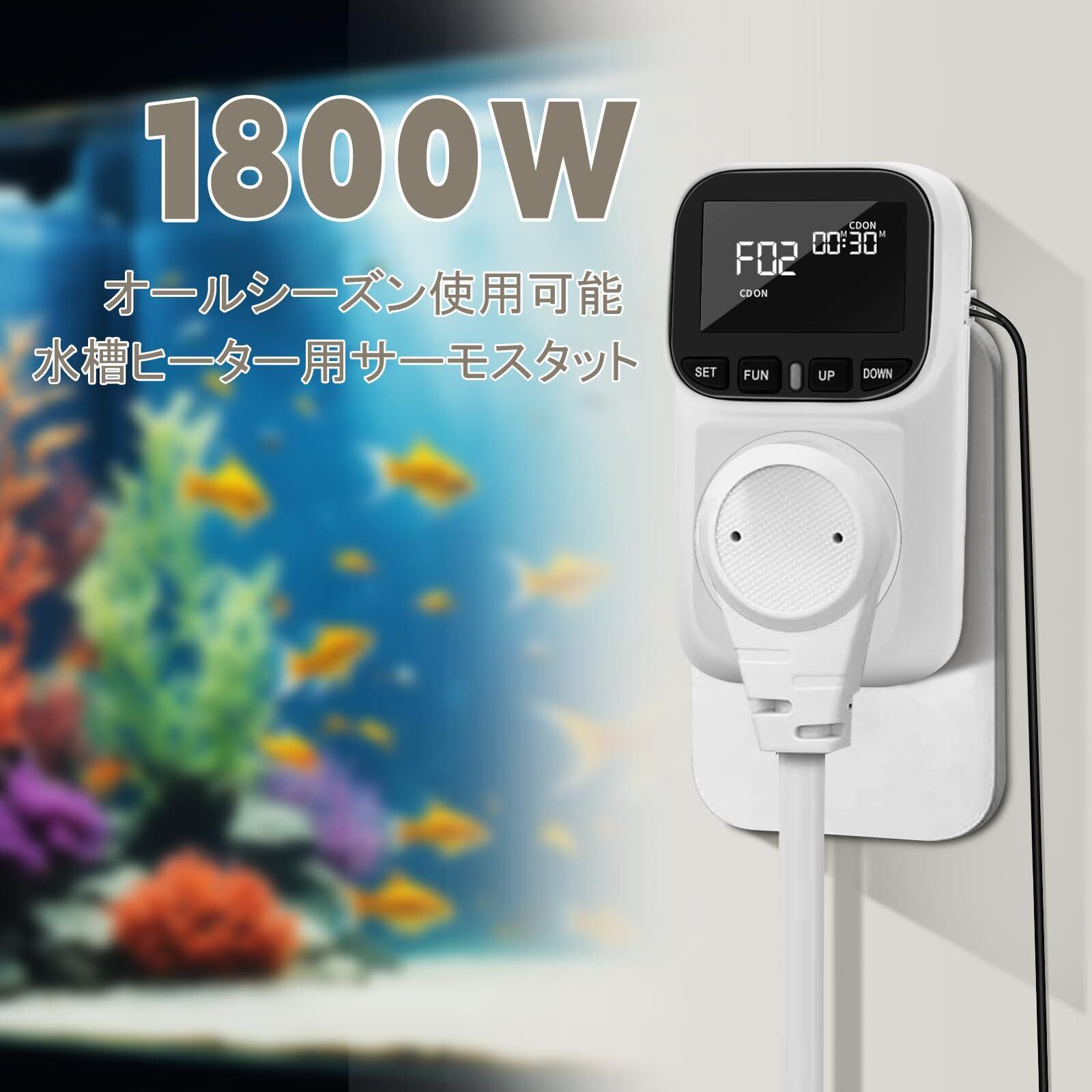 Aideepen 1800W サーモスタット 接続可能なチラーとヒーター 爬虫類 水槽 ヒーター サーモスタット温度センサー 冷却と加熱モード 7つの設定モード 育苗槽の温度管理 自動温度調整モードと温度補正モード 保育園、水族館、爬虫類(防水センサーケーブル付属)