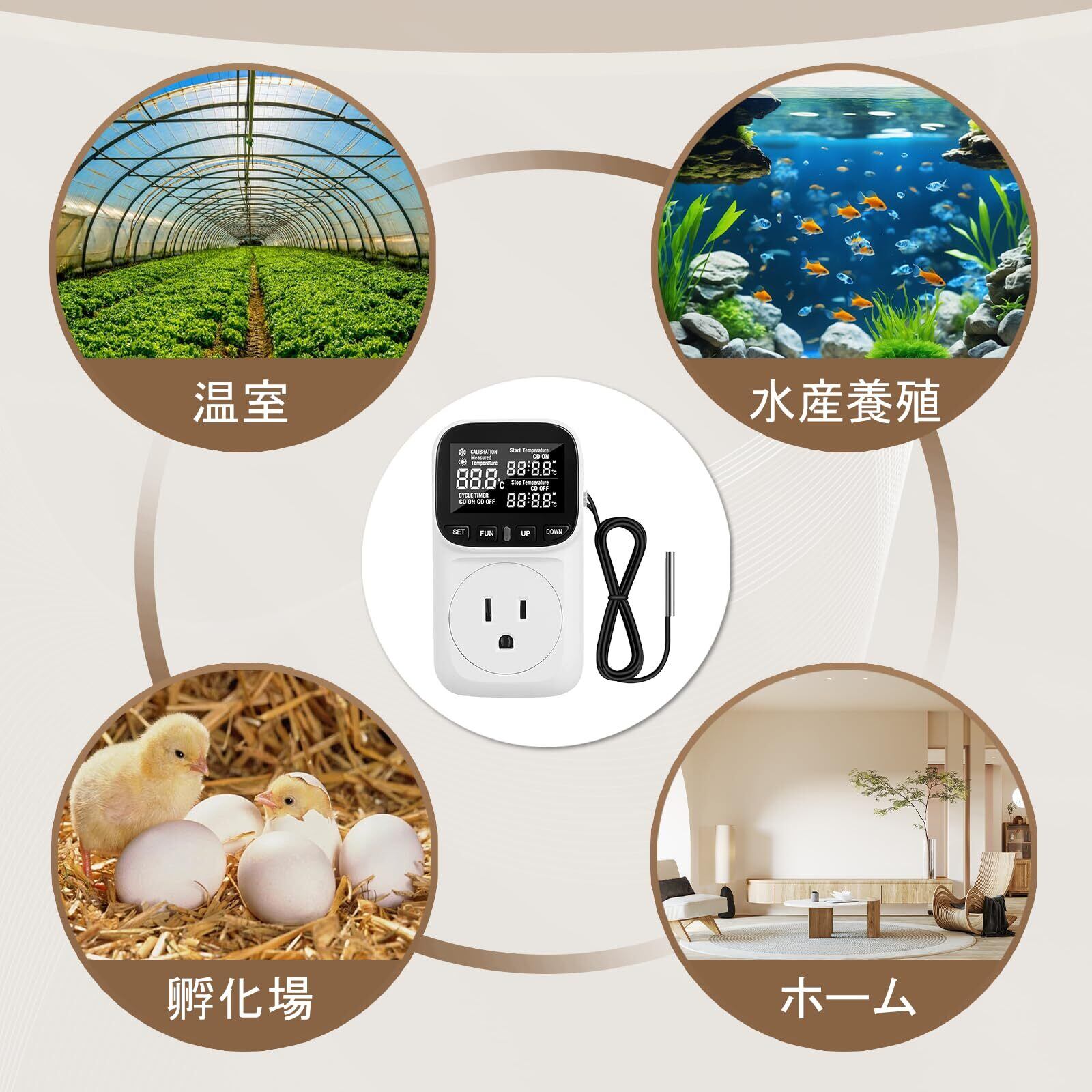 【幅広い用途に対応】このサーモスタットは、野菜の恒温ハウスやキノコハウスの環境制御、孵化場や栽培栽培槽の温度調節、自家醸造やワインセラーの恒温管理、発酵室の温度監視、恒温水槽や水族館の水の温度安定化、ペット飼育環境の温度調節、爬虫類や恒温鳥類、ウサギ小屋の恒温温度制御など、様々な場面で広く使用されています。 その多用途性と高精度は、さまざまな分野での温度制御に対する厳しい要求を満たすことができます。