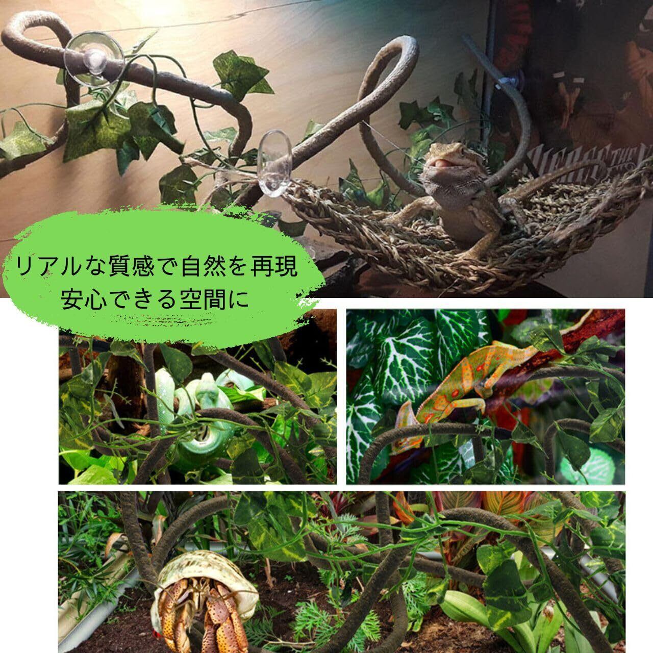 人工藤 爬虫類 つる 吸盤付き 登り木 登り藤 葉 枝 テラリウム 隠れ家 人エ植物 装飾 飼育 両生類 トカゲ カナヘビ レオパ 設置簡単 柔軟性 屈曲可能