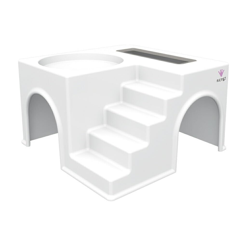 2階部分に食器が置ける、階段付きの爬虫類用ハウスです。天面の色付き窓から、中の様子を覗くことができます。
