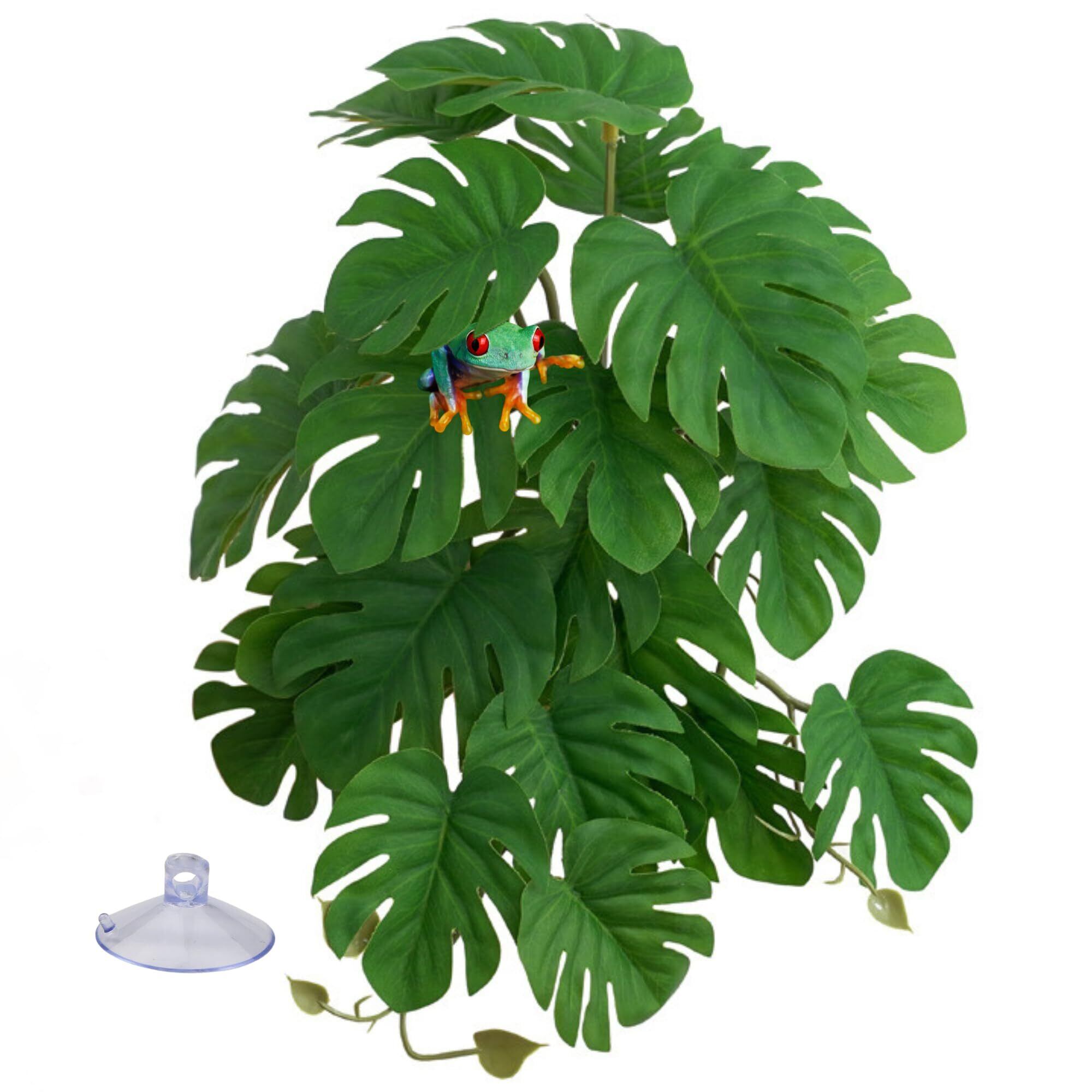 【熱帯雨林の隠れ家を再現】 リアルな造形の葉が爬虫類・両生類に快適な隠れ場所を提供しながら、行動するスペースを作り自然の雰囲気を再現します。