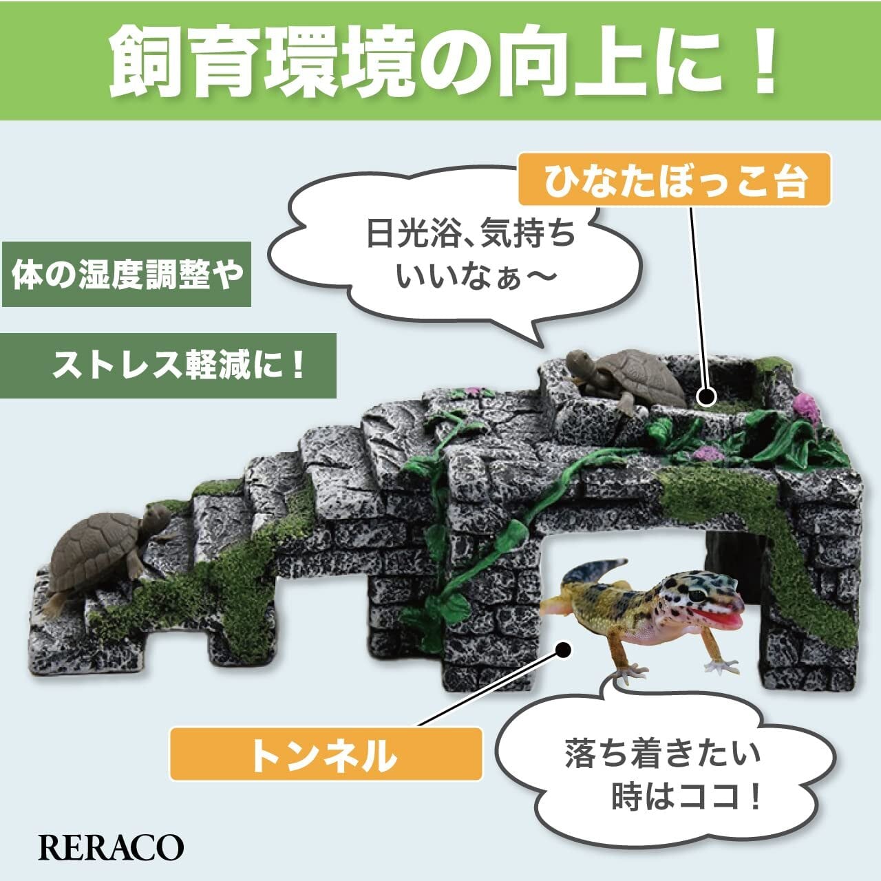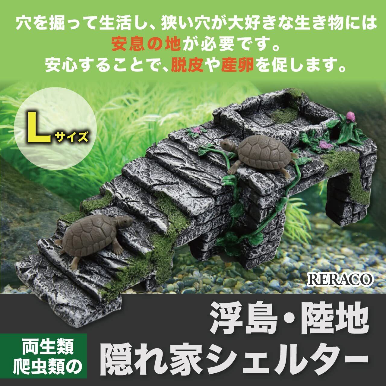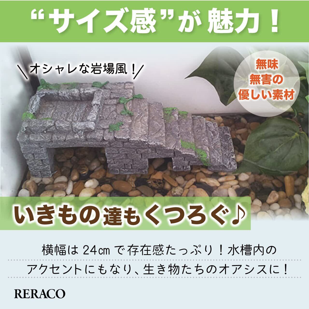 RERACO アクアリウム 両生類 爬虫類 亀 浮島 隠れ家 小型 シェルター 階段 日光浴 石 岩 台 台座 トンネル 小 桟橋(L)