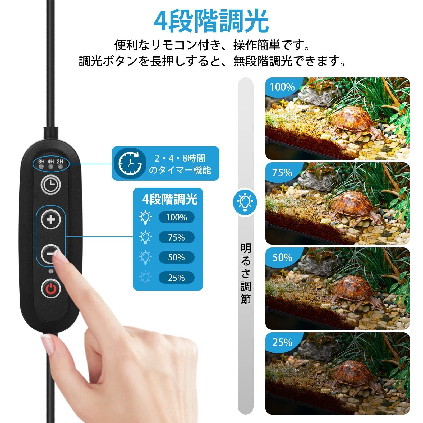 ●光量4段階調節と無段階調光:設置場所と飼育している生体の体調に合わせて光量を設定できます