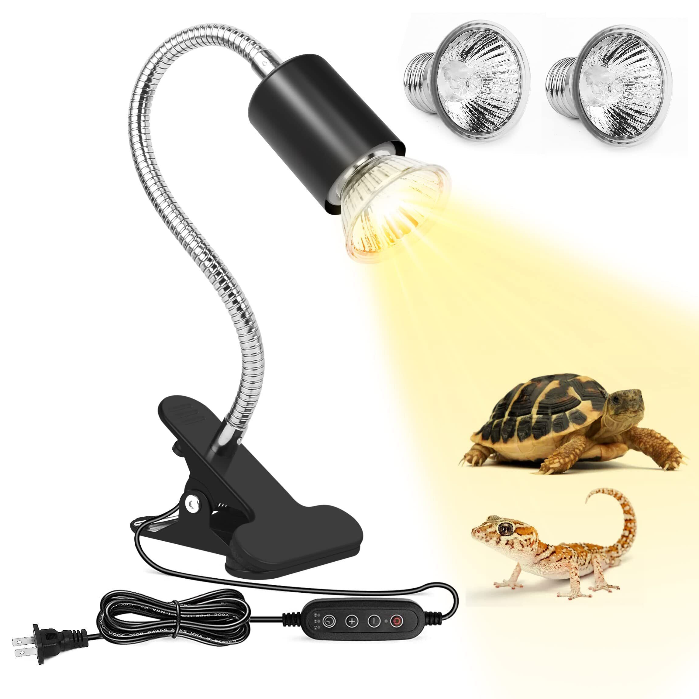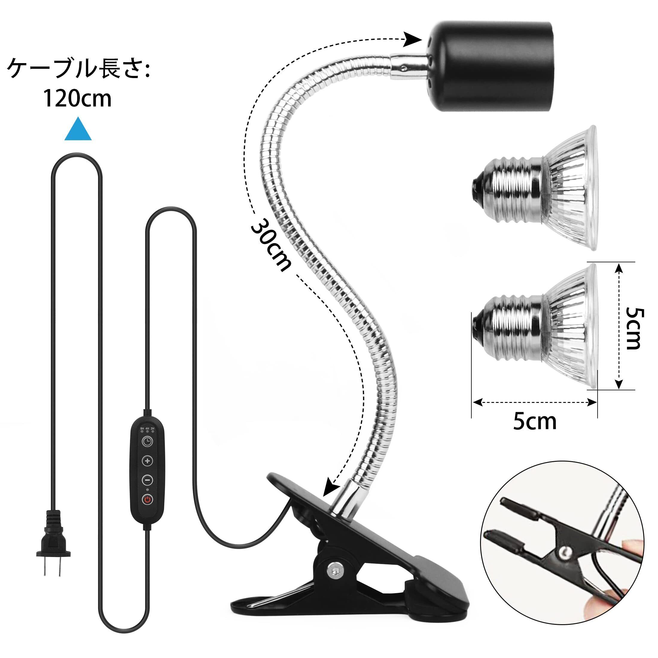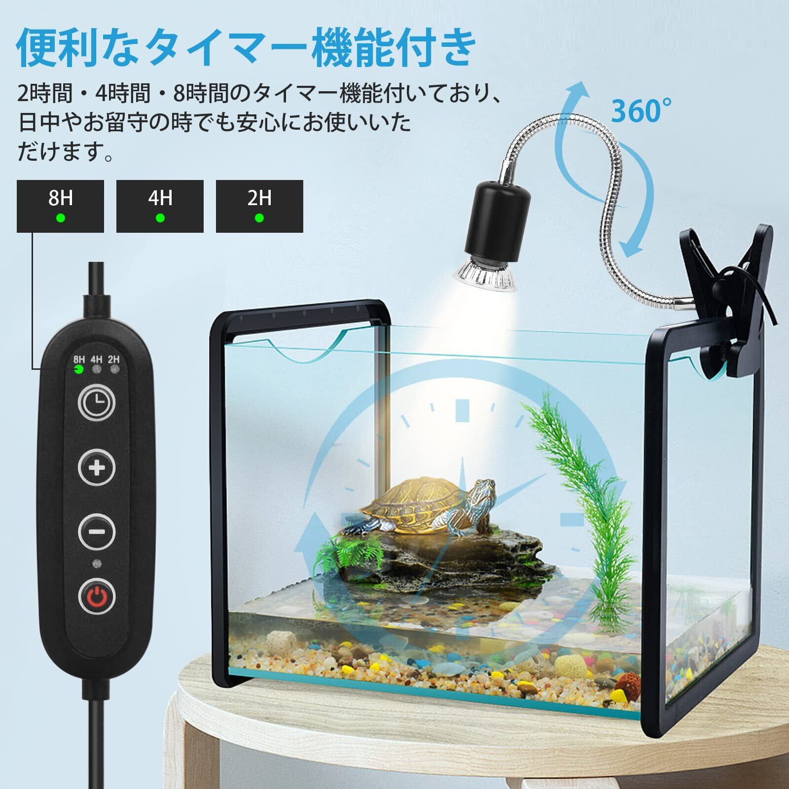 亀ライト 爬虫類 両生類用ライト UVA+UVB 無段階調光 タイマー機能 25W+75W 2つ電球付き トカゲ カメレオンの飼育に最適 (25W+75W, ブラック)