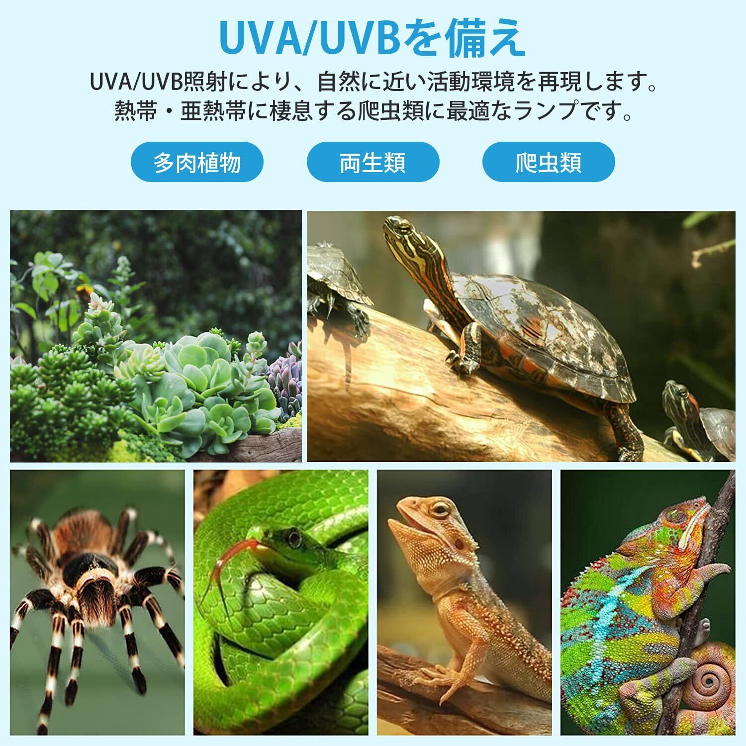 【2つの電球付属(25Wと75W)】 亀の飼育には、身体を温める為のバスキングライトと体内のビタミンD 生成の為のUV(紫外線)ライトの2種類が必要です。この両生類用ライトは熱帯・亜熱帯に棲息する爬虫類に不可欠なUVAとUVBを照射するるランプです。また、口金はE27です。蛍光灯、白熱灯、セラミック電球、UVランプ、ハロゲンランプ、LEDなどの他のE27電球にも適用できます。