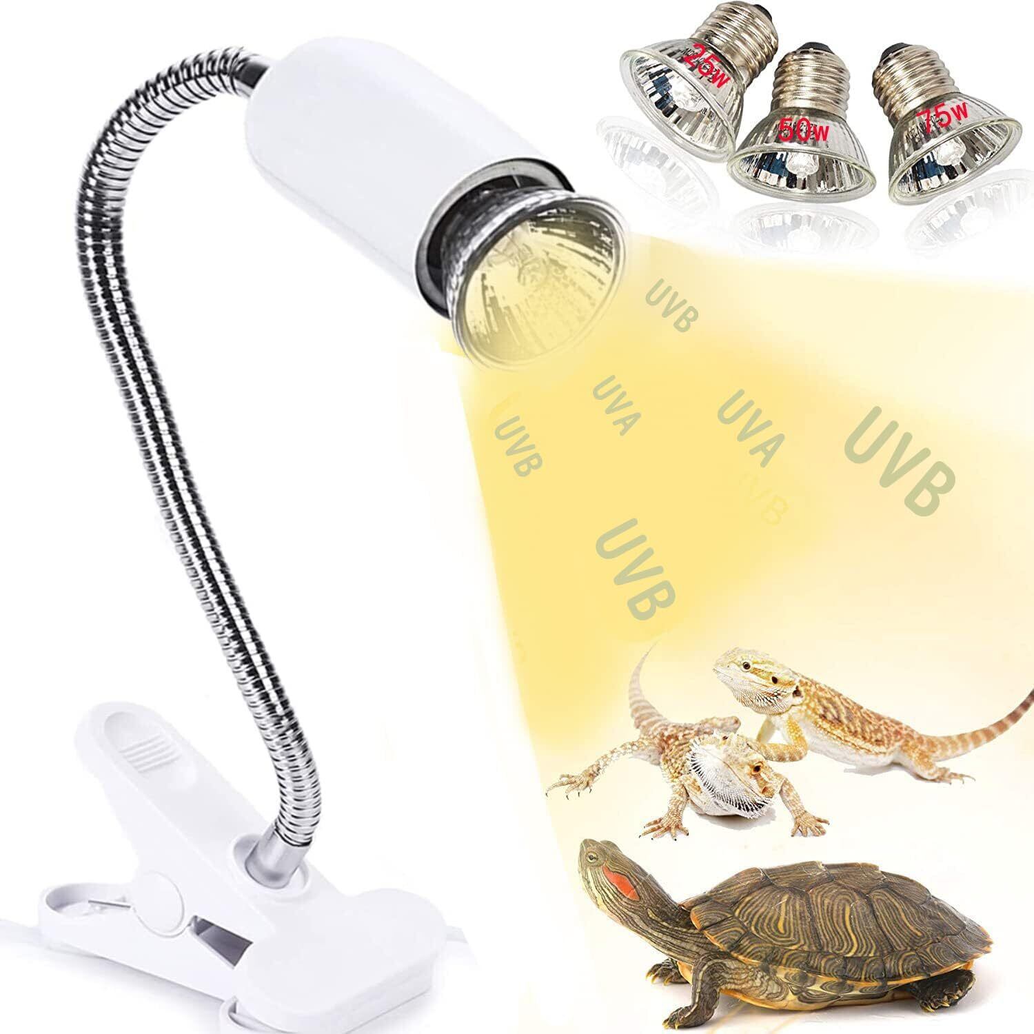 爬虫類 ライト 紫外線ライト 爬虫類 亀ライト 25W+50W+75W アナログ太陽 紫外線ランプ 赤外線ライト 亜熱帯UVA + UVB ライト 両生類用ライト 爬虫類 ヒーター 照明 ライト クリップスタンド 式 バスキングライト ランプホルダー 亀日光浴ライト 爬虫類 カルシウム 背中を干す カメ/トカゲ/ヘビ 保温電球 光量調節コード 角度調節 スイッチ付き 360°回転可能