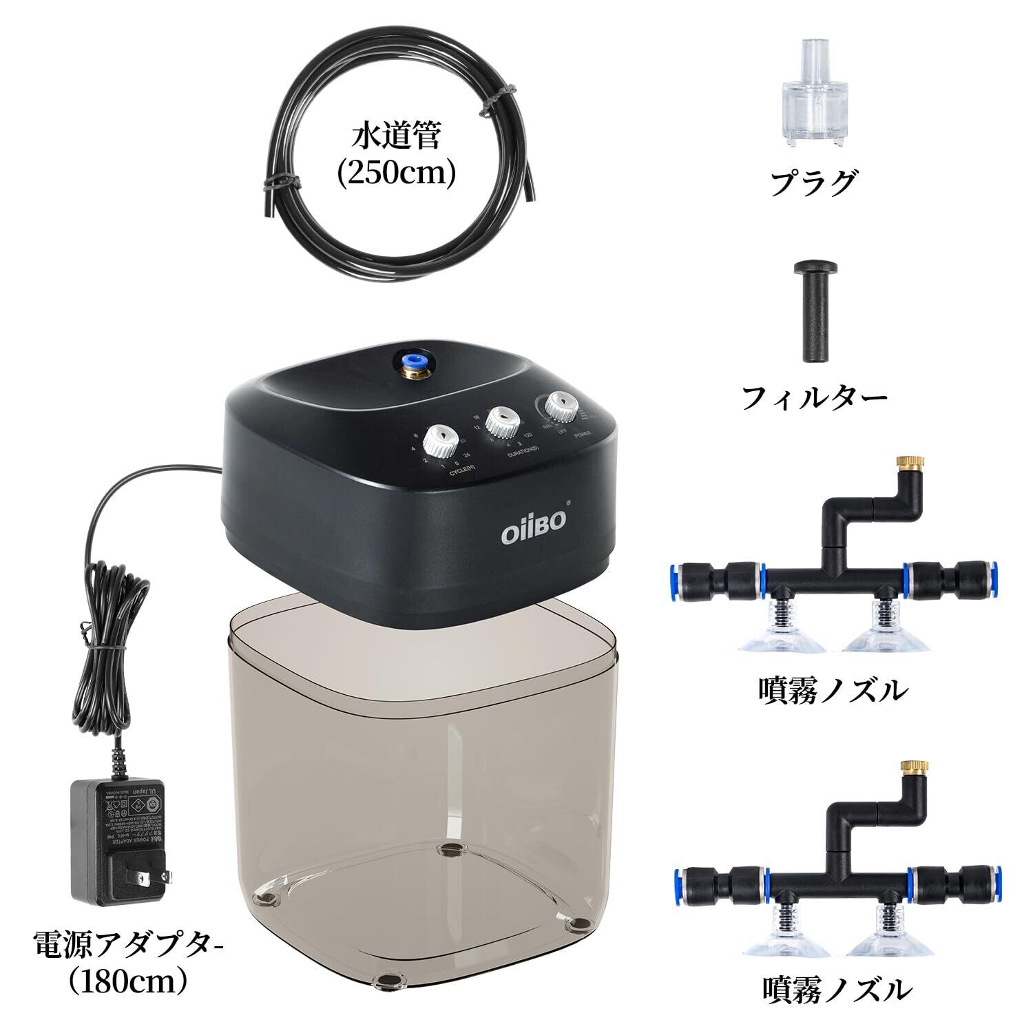 デジタルタイマー付加湿器 爬虫類 テラリウム・パルダリウム用 設定した時間・間隔でミストを自動で噴霧 水容量2.2L 黒