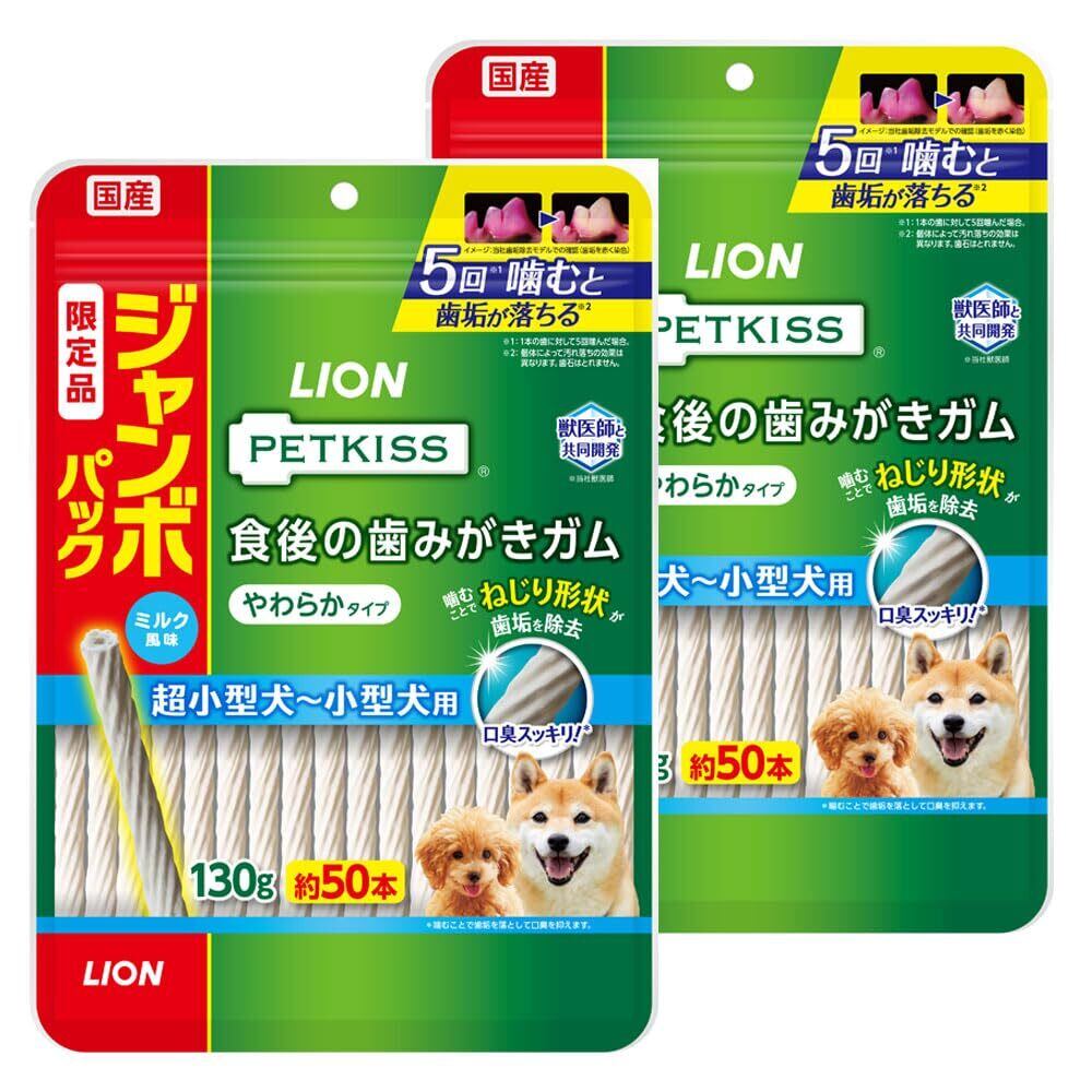 ライオン ペットキッス PETKISS 犬用おやつ 食後の歯みがきガム やわらか ジャンボパック 130gx2袋 LIONPET