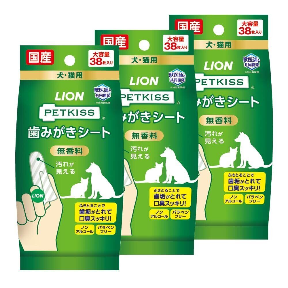 ライオン ペットキッス(PETKISS)歯みがきシート 無香料38枚×3個