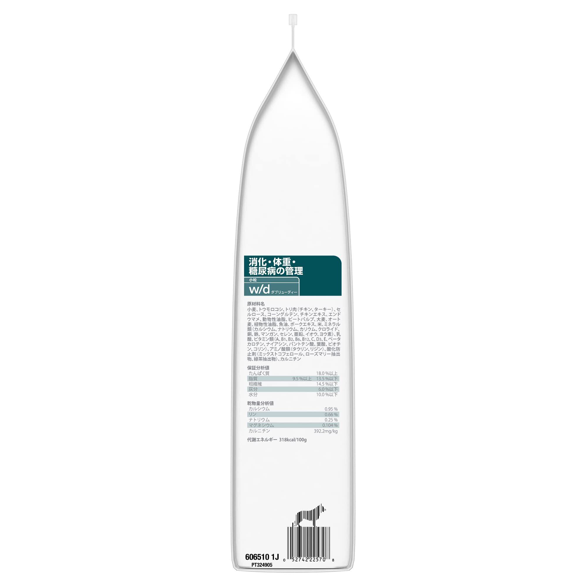 ヒルズの栄養学者と獣医師が開発した、ヒルズ プリスクリプション・ダイエット(特別療法食)〈犬用〉 w/d 小粒 ドライは、可溶性繊維と不溶性繊維のバランスの良いブレンドと高レベルの食物繊維*¹ による消化、体重管理、糖尿病の管理と下部尿路の健康に役立つことが科学的に証明された療法食です。製品サイズ:1kg / 3kg