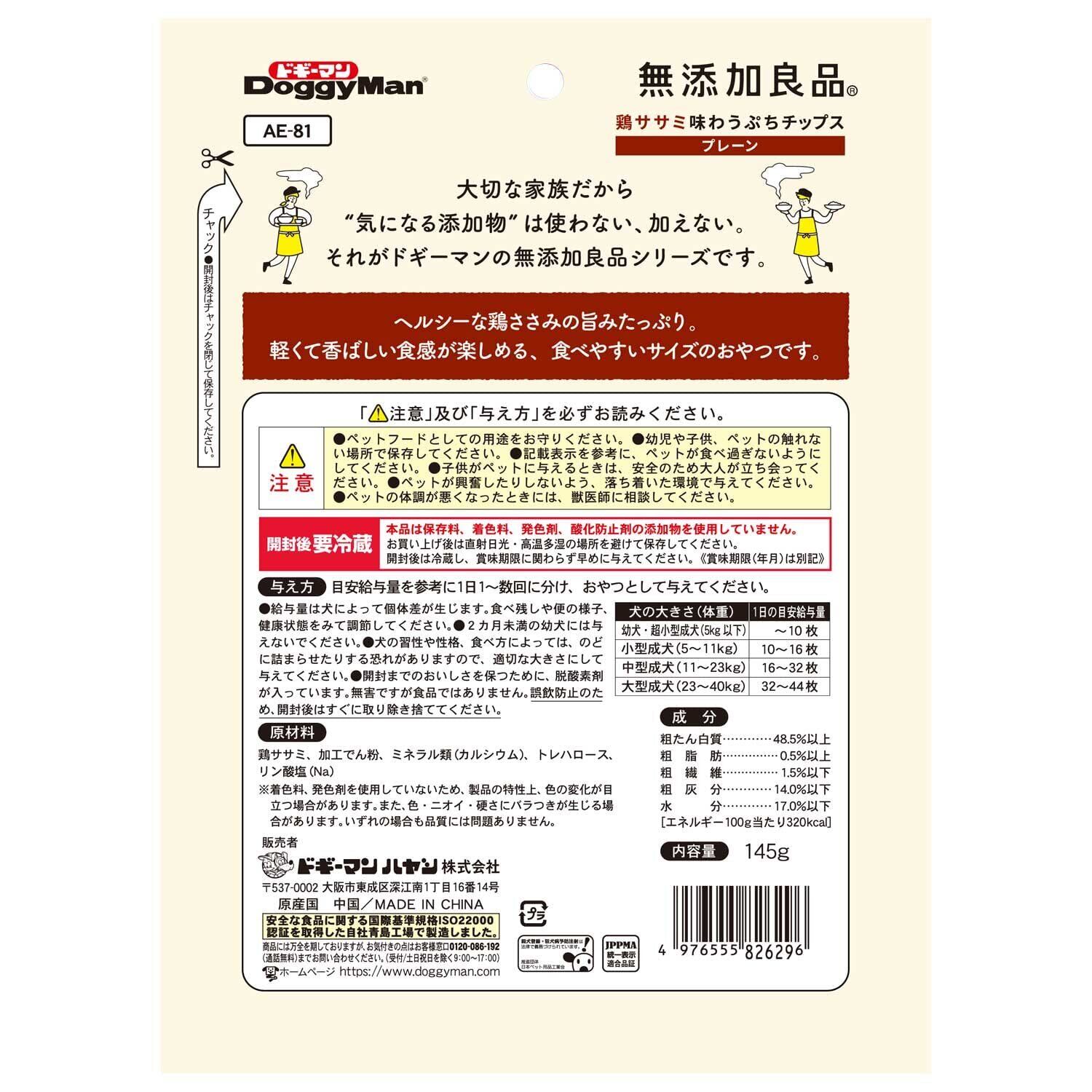 ドギーマン 無添加良品 鶏ササミ味わうぷちチップス プレーン 145g 犬用おやつ