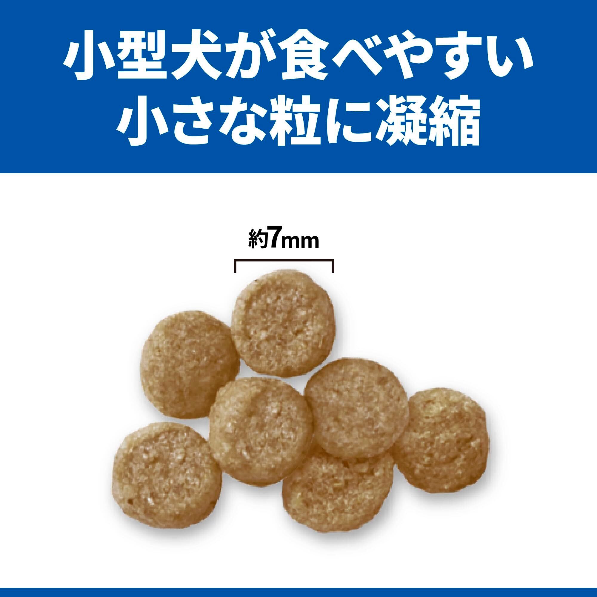 肥満傾向、または運動量が少ないなどの理由で体重が増えやすい愛犬に、適切な栄養バランスで、適正体重の維持をサポートするドッグフードです。7歳以上のトイプードル、チワワやミニチュアダックスフンドといった小型犬種に対応。脂肪分約23%オフ・カロリー約14%オフ*を実現し、健康的な体重管理をサポートします。また、消化に良い高品質な自然素材を小型犬が食べやすい小さな粒に凝縮し、食物繊維で満腹感を維持。ナトリウムとリンの量を適切に調整することで、腎臓と心臓の健康も維持するとともに、カルシウムやグルコサミン、コンドロイチン硫酸が、健康な骨や関節をサポートします。この製品は、ペットフード公正取引協議会の定める分析試験の結果、成犬用の総合栄養食であることが証明されています。(*当社「シニア 小型犬用 高齢犬用」ドライ製品との比較)