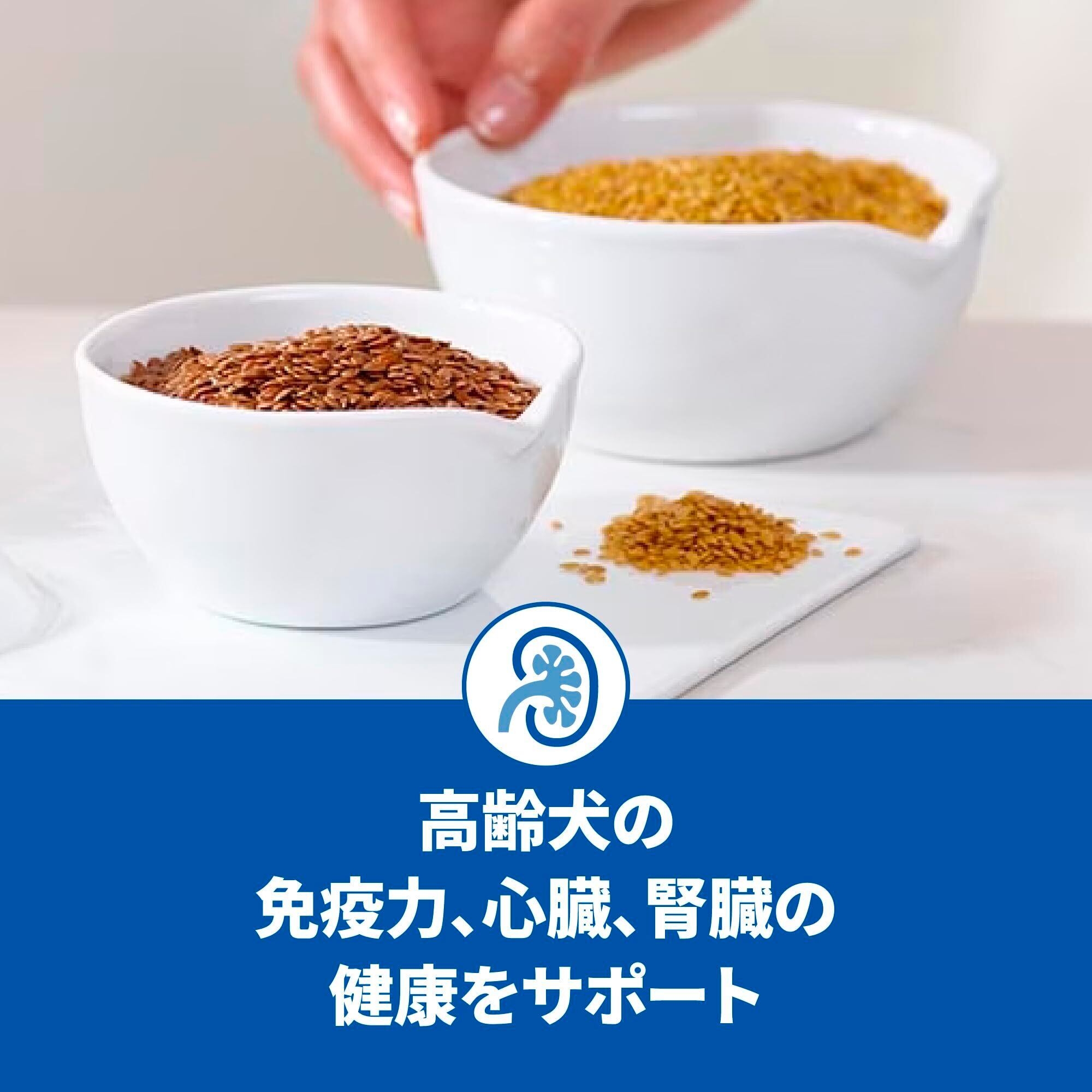 愛犬の健やかなエイジングのために、高齢期の免疫力、心臓、腎臓の健康をサポートするための、適切な栄養バランスを実現したドッグフードです。6歳以上のゴールデンレトリバー、ラブラドールレトリーバーやバーニーズマウンテンドッグといった大型犬種に対応。ナトリウムとリンの量を適切に調整し、腎臓と心臓の健康を維持します。また、グルコサミンとコンドロイチン硫酸が、体重の負担が大きい大型犬の健康な関節と軟骨を維持。消化に良い高品質な自然素材が健康的な便に配慮するとともに、こだわりのおいしさを提供します。そして、ビタミンEとオメガ3&6脂肪酸が、健康な皮膚と美しい被毛をサポートします。この製品は、ペットフード公正取引協議会の定める分析試験の結果、成犬用の総合栄養食であることが証明されています。