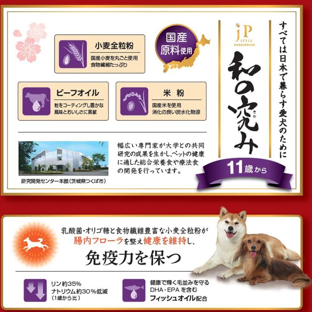 ジェーピースタイル 和の究み ドッグフード 小粒 11歳から【国産/アルミ小分け】 3kg(500g×6)