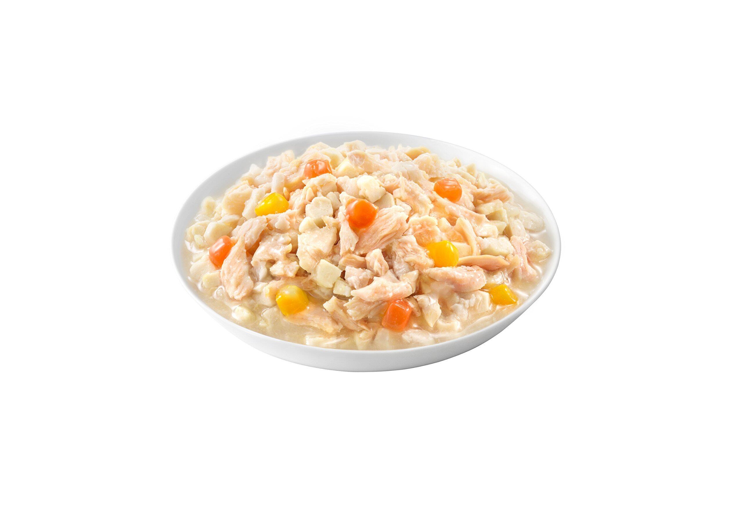 14歳からの愛犬のために。低脂肪なささみをふっくら蒸して、低カロリー※に仕上げました。厳選されたささみに野菜を加えて、丁寧に調理し、素材のおいしさをそのまま閉じ込めました。高齢犬にも食べやすく、ささみを細かくほぐしています。グルコサミン配合で、足腰の健康維持をサポート。※シーザートレイ 14歳からの 絹ささみ 玄米・野菜入り 100gあたり29kcal減