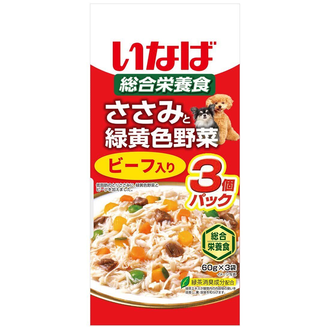 いなば ささみと緑黄色野菜 ビーフ入り 60g×3袋 4個セット