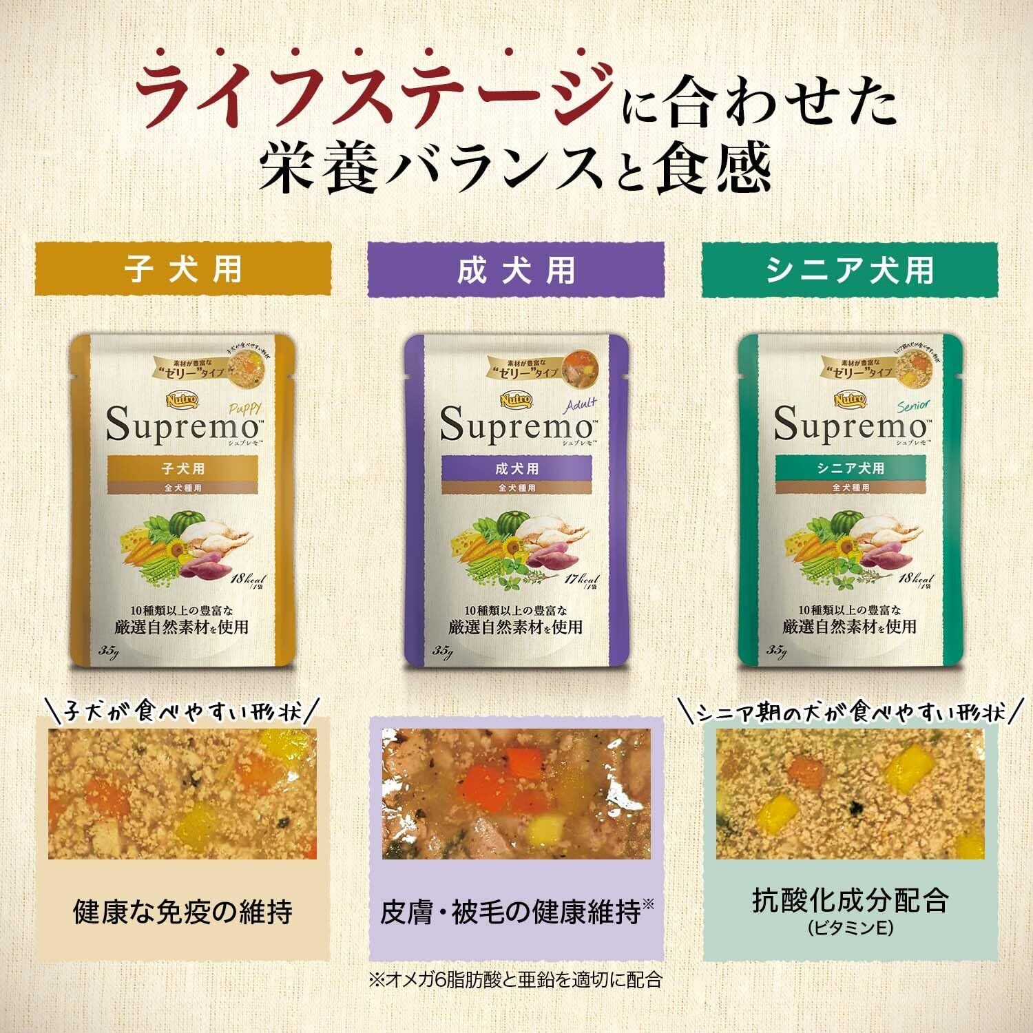 Nutro シュプレモ ウェット ゼリータイプ 成犬用 全犬種用 35g×12袋 パウチ 少量使い切り 総合栄養食 ドッグフード 犬 まとめ買い 厳選自然素材 香料・着色料 無添加 ニュートロ