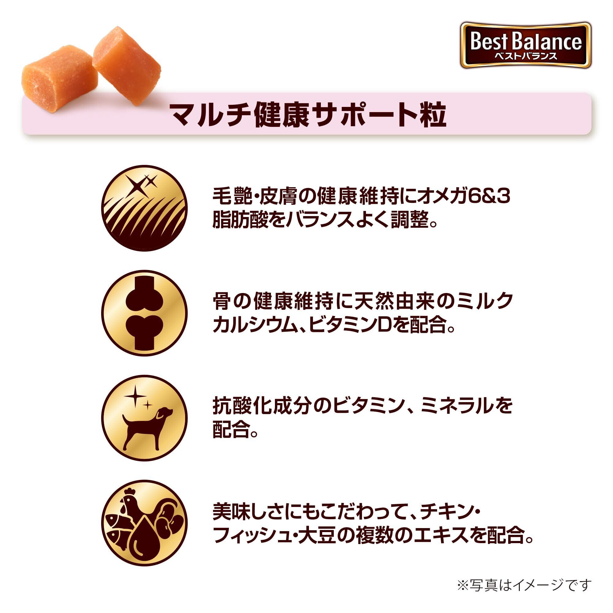 ・10歳以上のチワワに合わせた専用粒サイズ設計 ・骨、ひざ、腰、関節の健康維持のために、ミルクカルシウム ・ビタミンDを配合、グルコサミン、コンドロイチンを強化 ・消化性に配慮した原材料を配合 ・骨、歯の健康維持のために、カルシウム、リンをバランスよく調整 ・皮膚、毛艶の健康維持のために、オメガ6&3脂肪酸をバランスよく調整 ・ビタミンE強化で、健康維持により免疫力維持をサポート