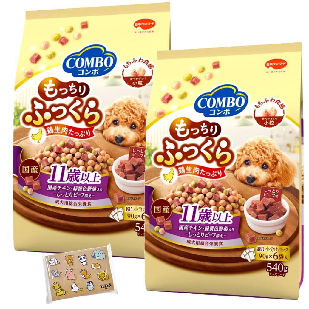 【2個セット】コンボ ドッグ もっちりふっくら 11歳以上 540g 国産チキン・緑黄色野菜入り しっとりビーフ添え YuZuNポケットティッシュ付き ドッグフード 犬 半生