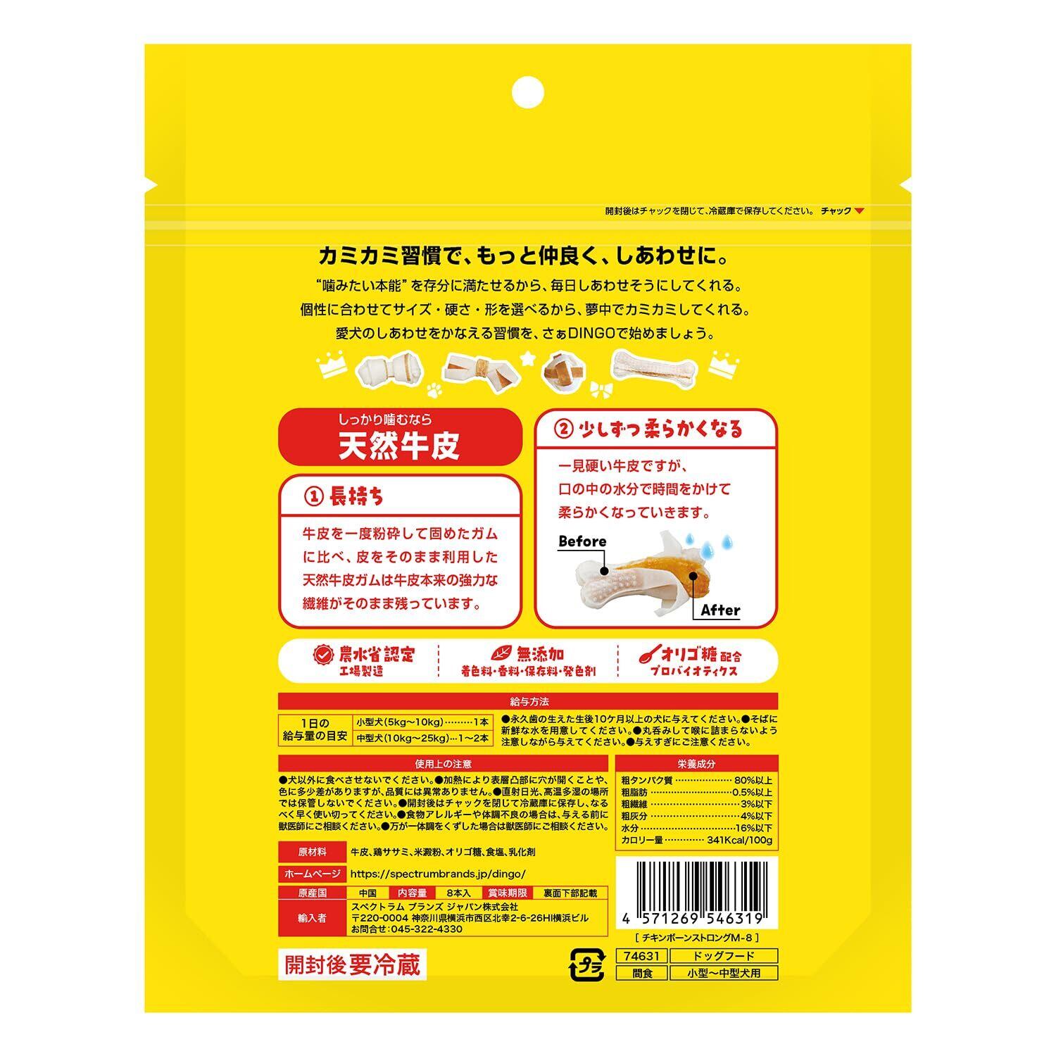 ディンゴ (DINGO) 犬 おやつ チキンボーンストロング M 8本入 犬 おやつ 牛皮とお肉で最後まで飽きずに食べる長持ちガム ストレス解消やイタズラ噛み防止に役立つ よく噛むことで歯の汚れや歯垢を落とす